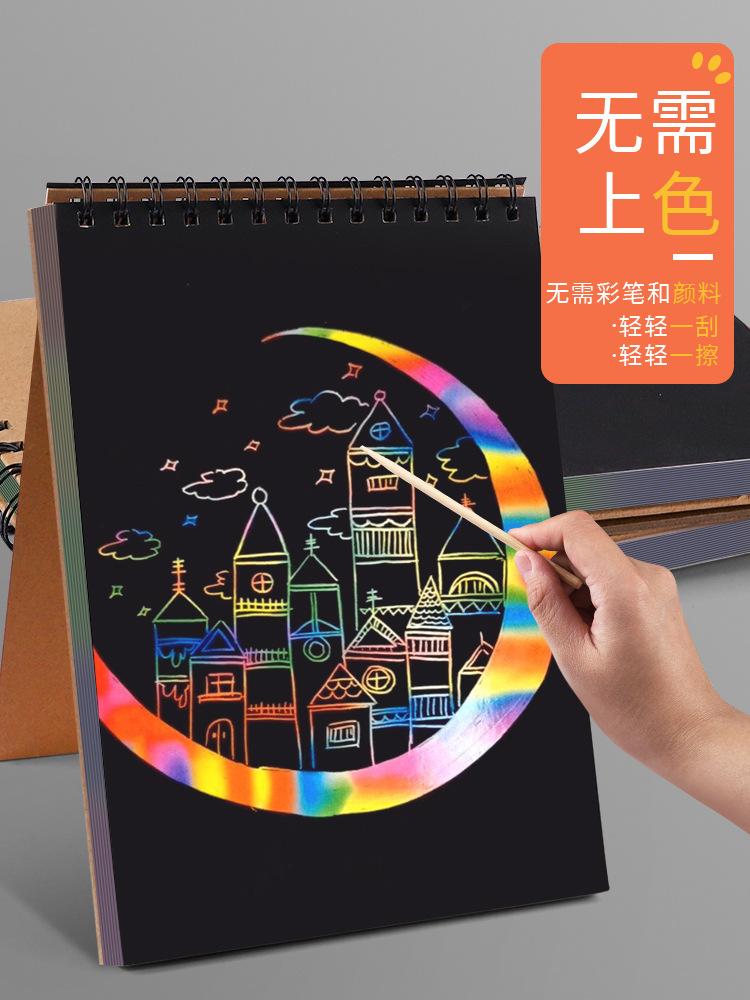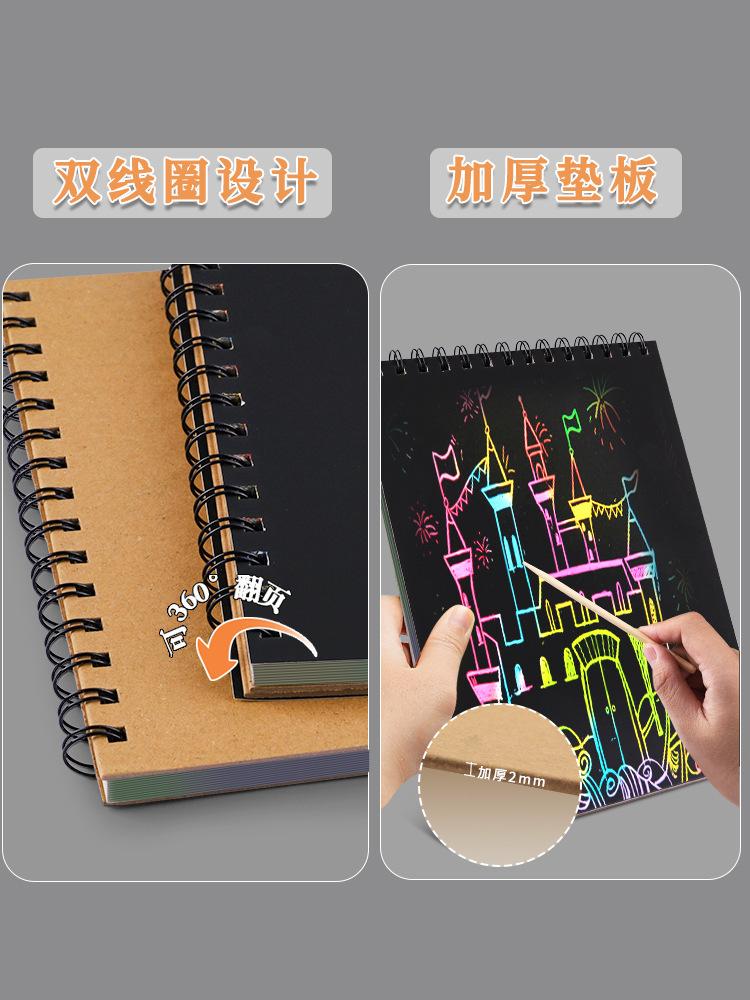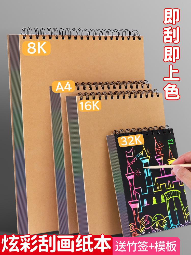 Papel de raspado rígido de colores en espiral para estudiantes de primaria, tamaño A4, papel de cera negro para raspar, hecho a mano en guarderías infantiles.