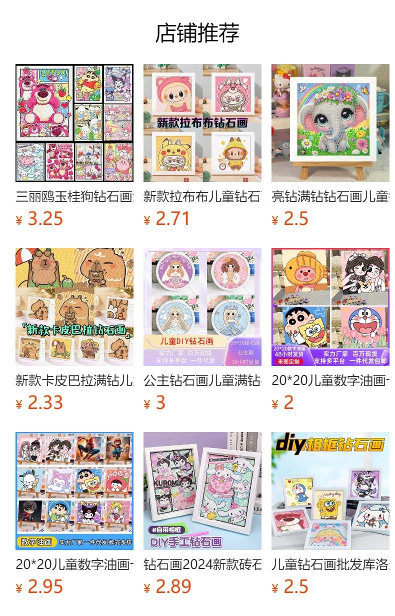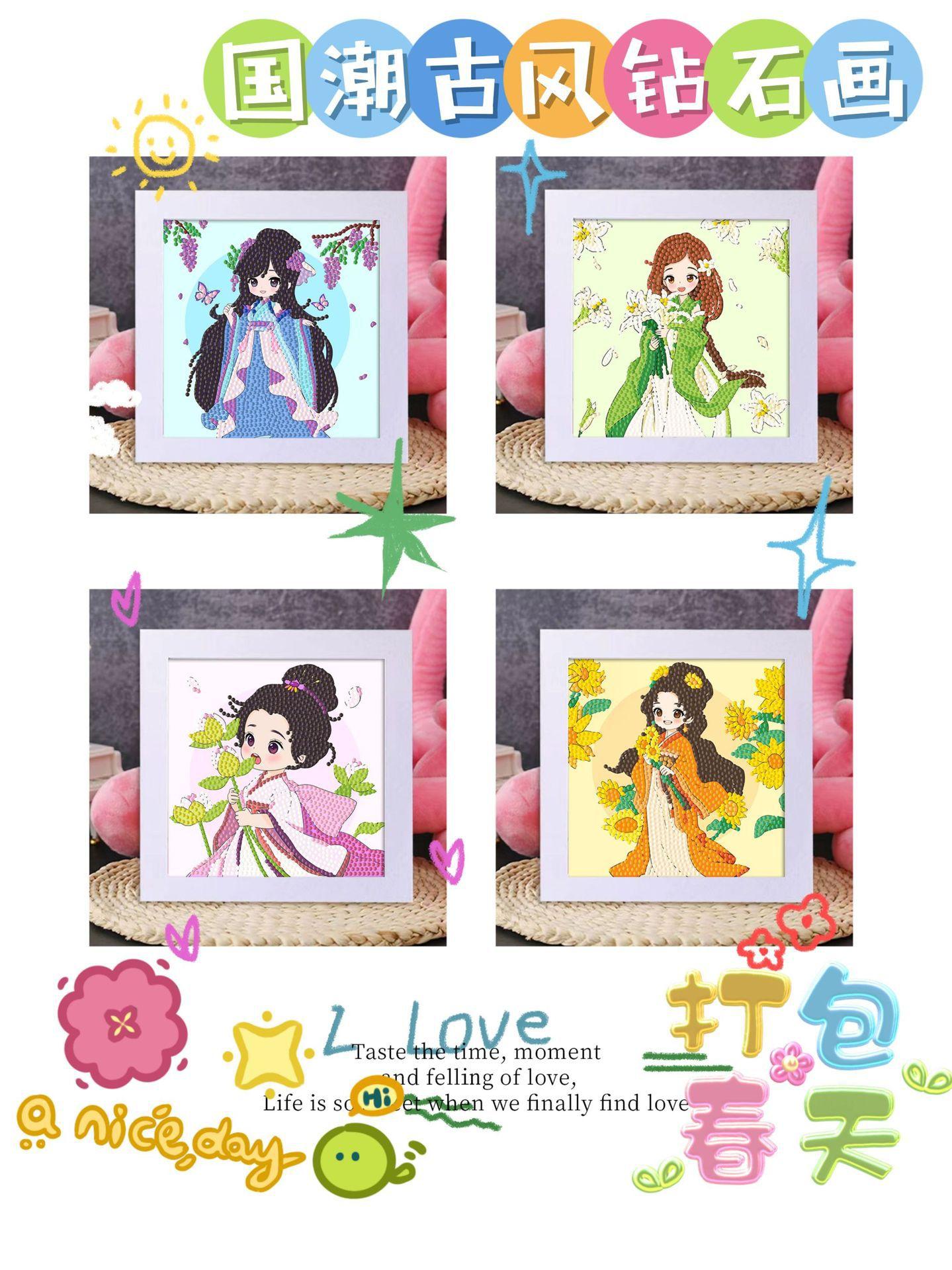 Pintura de Diamantes para Niños diy Hecho a Mano Enmarcado Paquete de Material Sanrio Dibujos Animados Pegatina de Diamantes Regalo Venta al por Mayor Pintura de Mosaicos