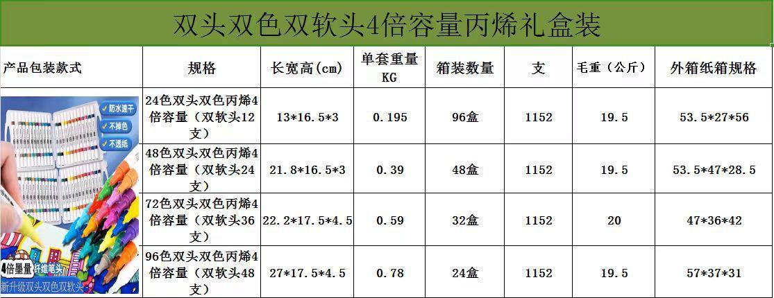 Two-head two-color thick rod soft flat box (a pen two colors, such as 24 colors only 12 pens)