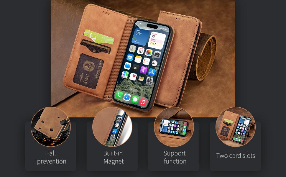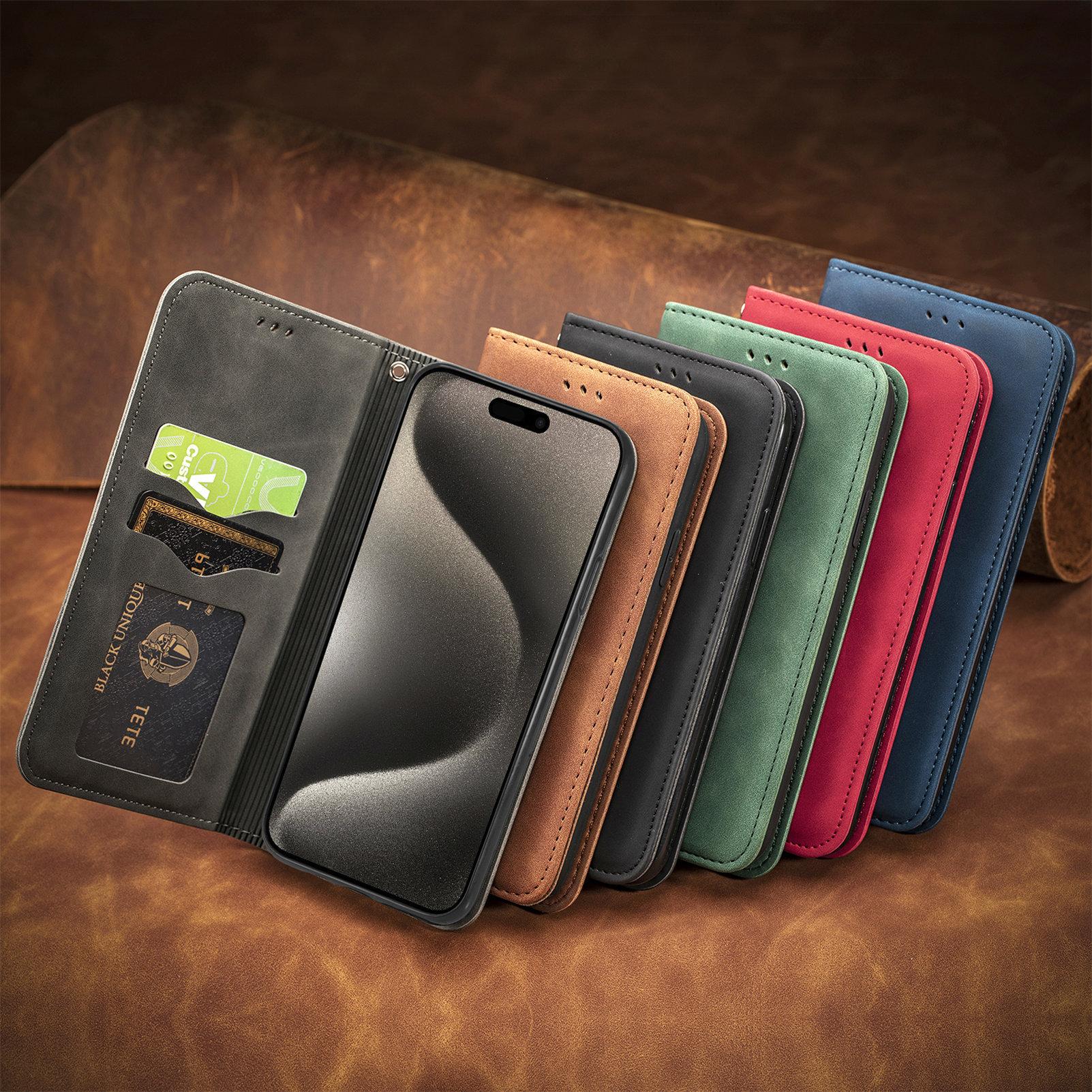 Funda de Cuero Tipo Billetera de Color Sólido para Negocios Adecuada para Iphone17 Funda Magnética para Teléfono Apple 17 Funda Protectora 15 Tarjetas 14 Funda