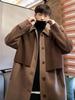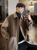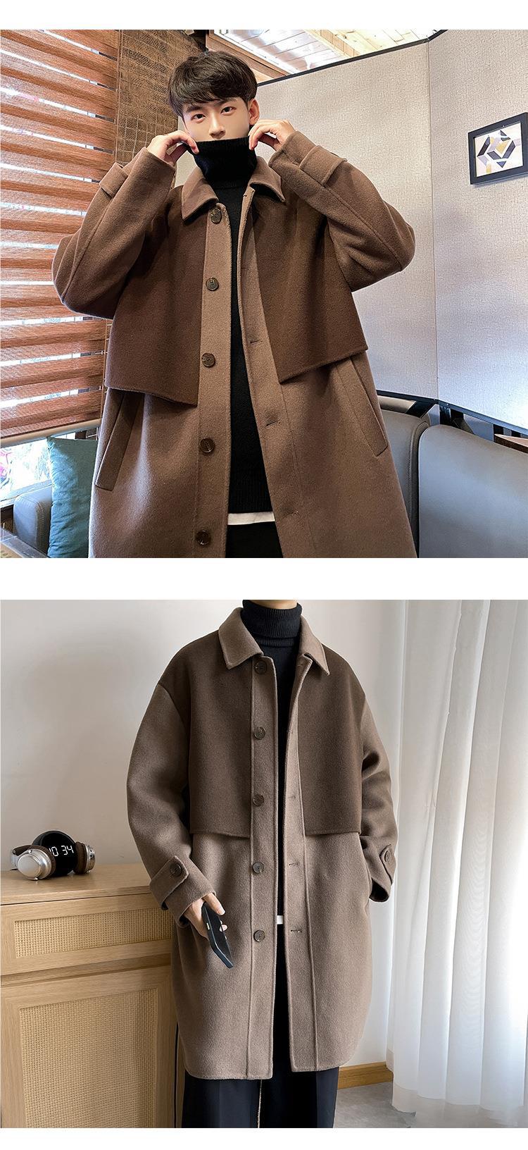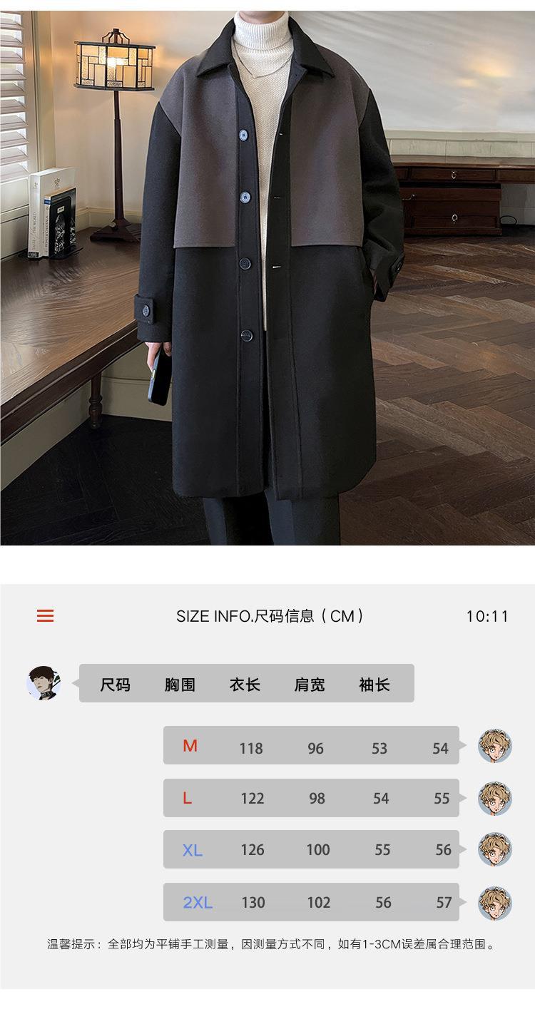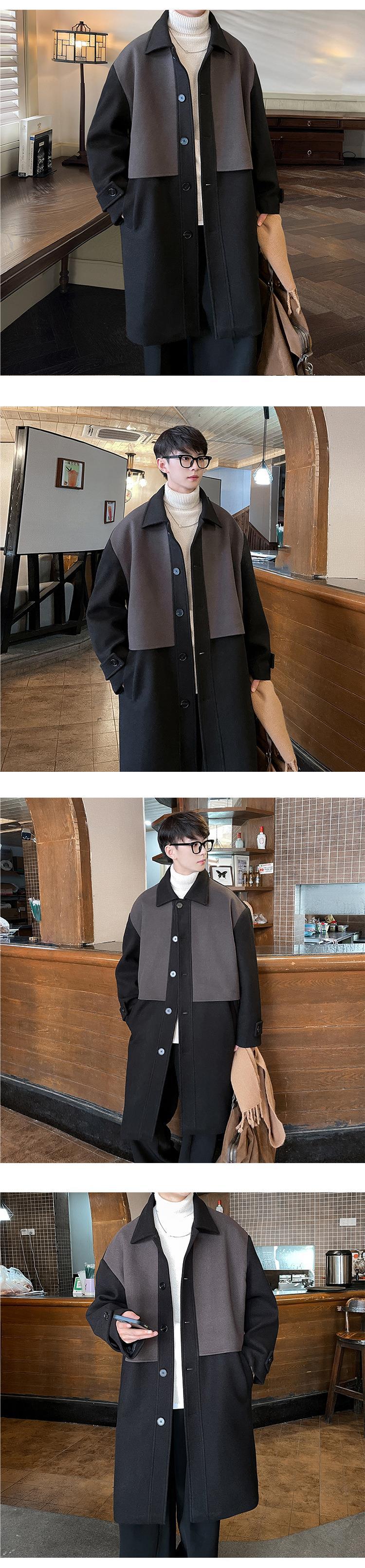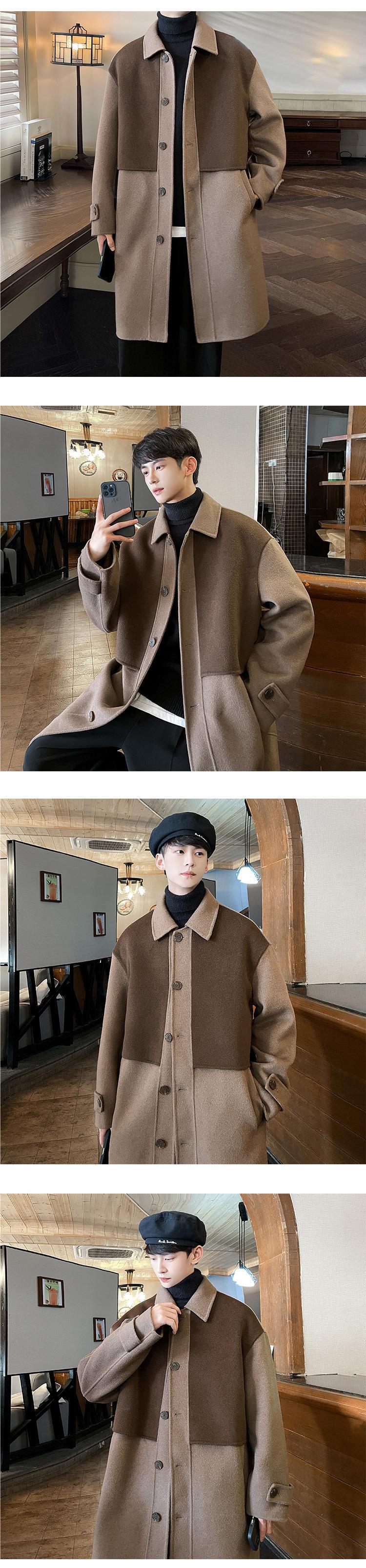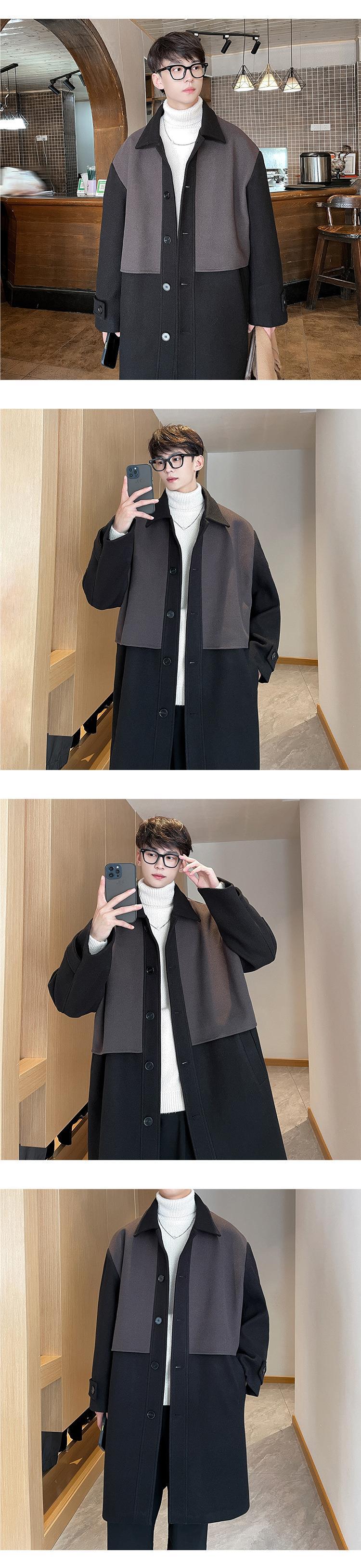 Abrigo de Lana Invierno Guapo Abrigo de Lana Casual Estilo Americano Abrigo para Hombre Largo Medio Costuras en Color Contraste Moderno Engrosado