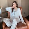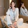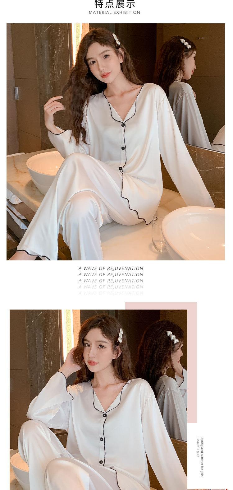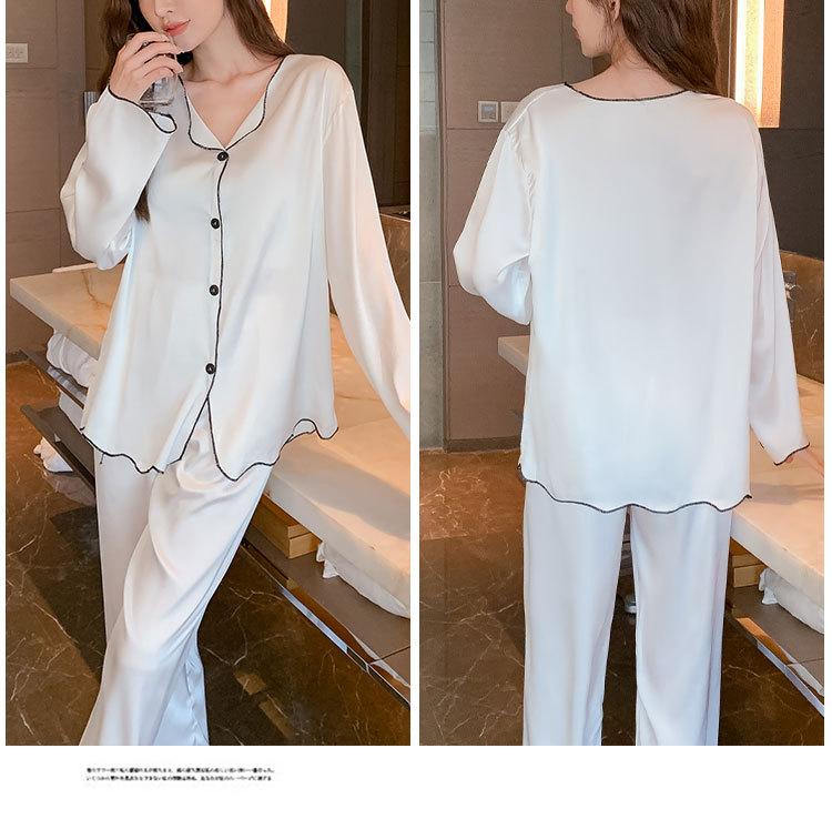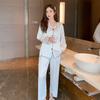 Pijamas de mujer de nuevo estilo 2023, primavera y otoño, de seda helada, de manga larga, con pantalones, traje de verano, ropa de casa