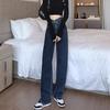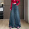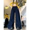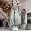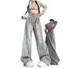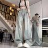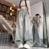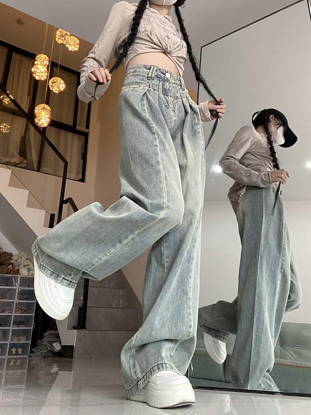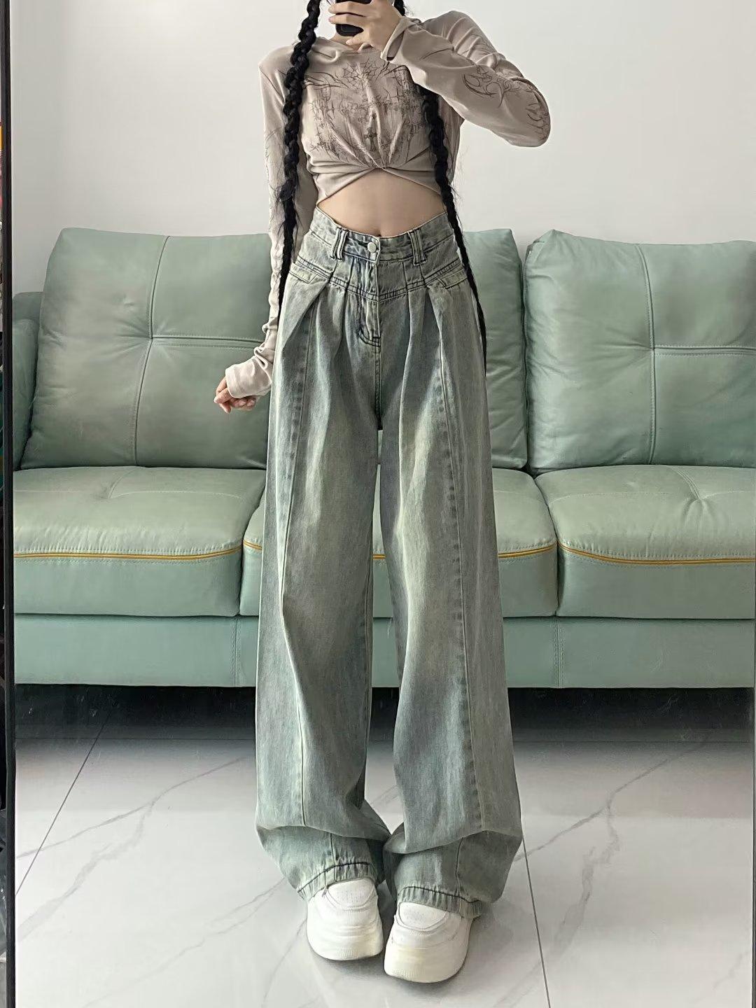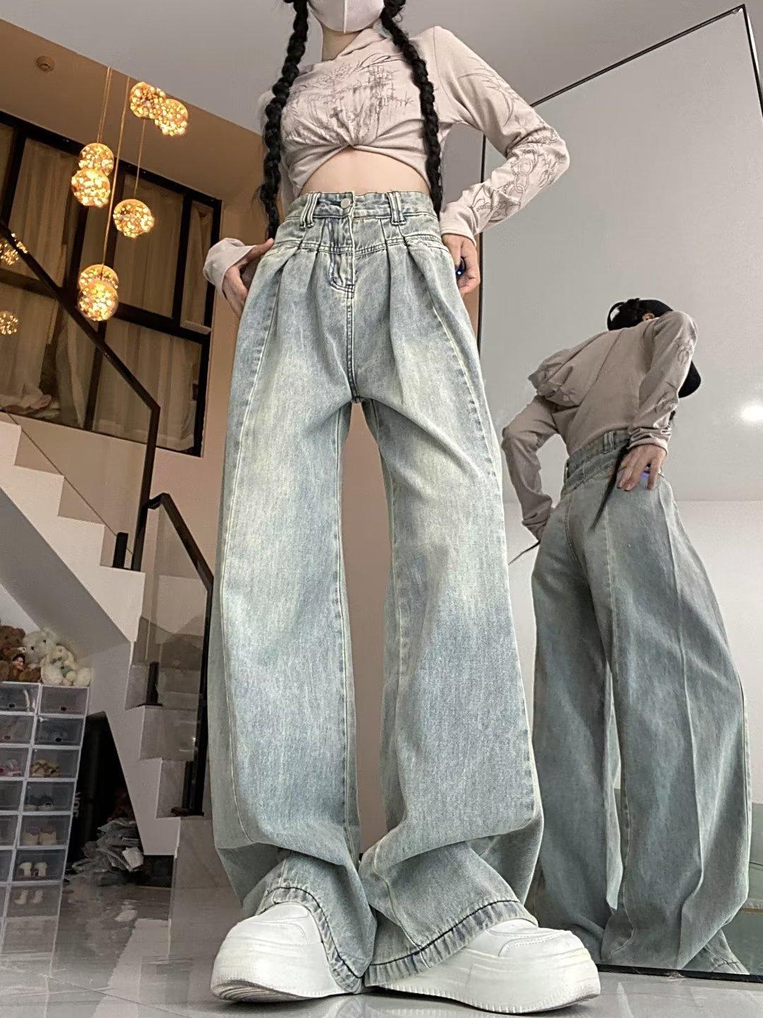 Pantalones vaqueros de pierna ancha con diseño plisado azul claro vintage para mujer, nuevos pantalones de verano de cintura alta, sueltos y drapeados, a la moda