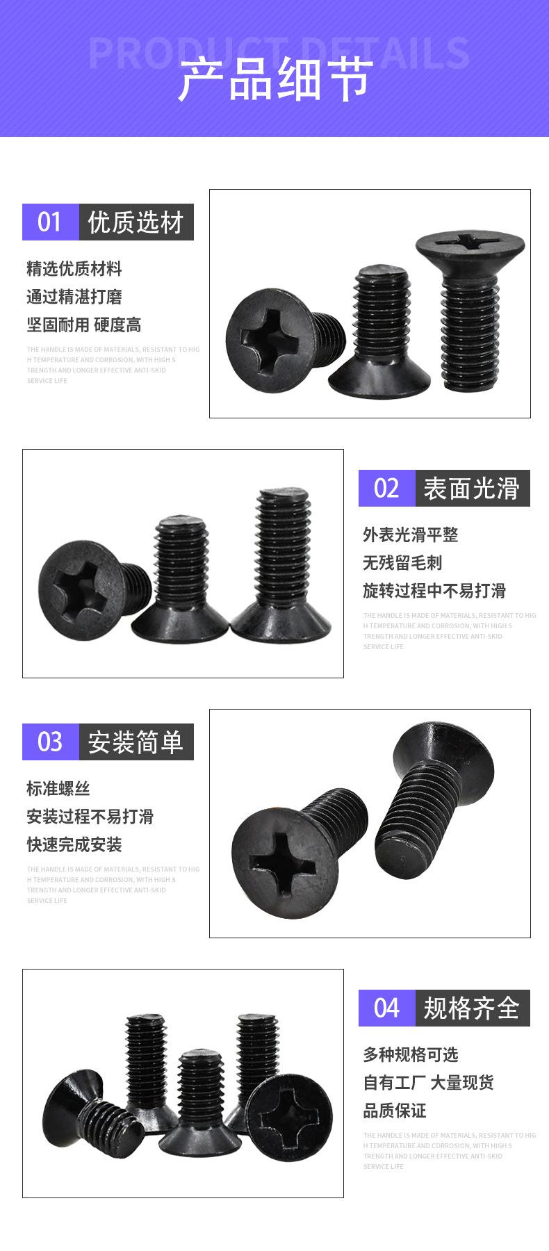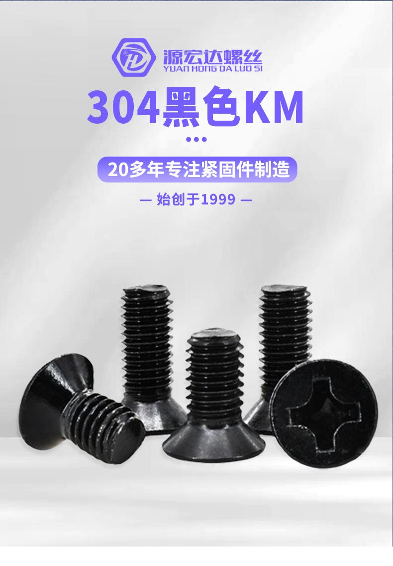 Venta directa de fábrica de tornillos para muebles de cabeza plana KM de acero inoxidable 304 negro, con cabeza avellanada cruzada, tornillo de máquina de alambre M2M8