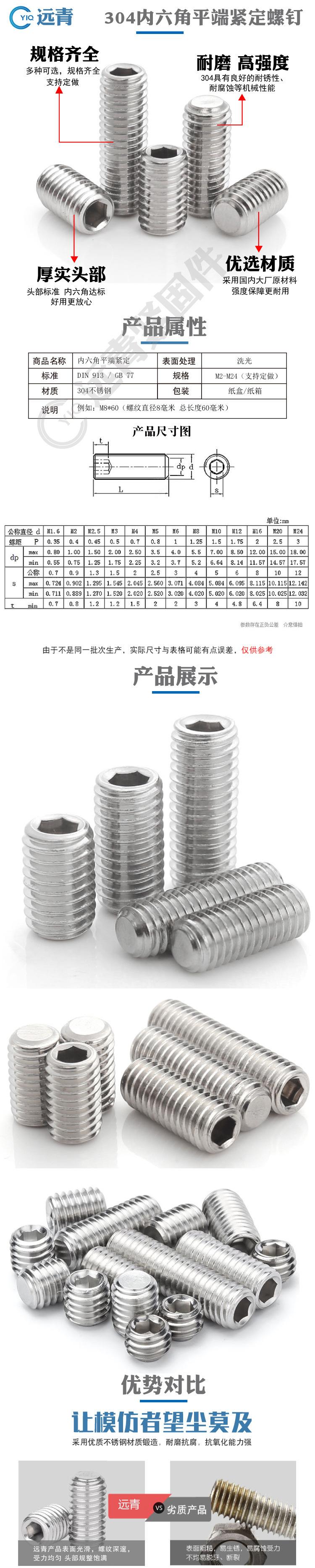 Tornillo de fijación de extremo plano de acero inoxidable 304 con cabeza hexagonal, sin cabeza, para máquina, tope de alambre superior M3M4M5M6M8M12
