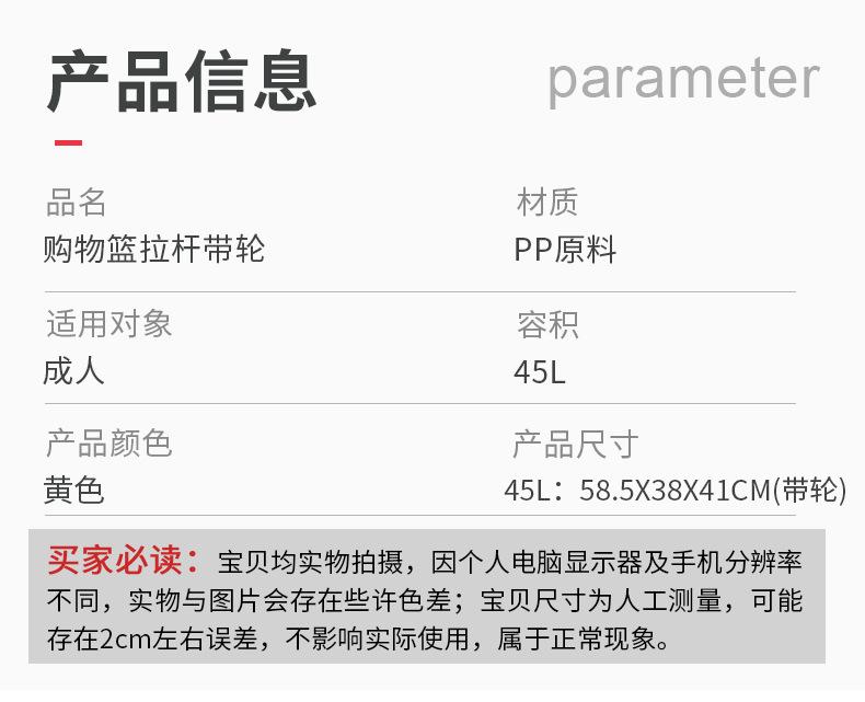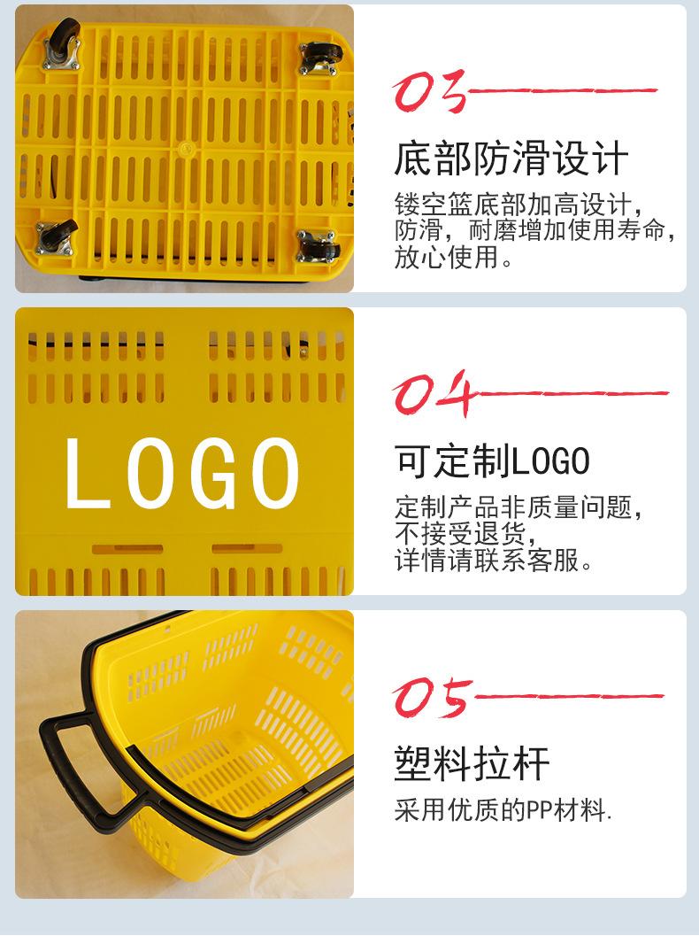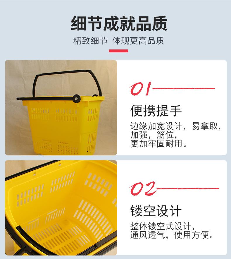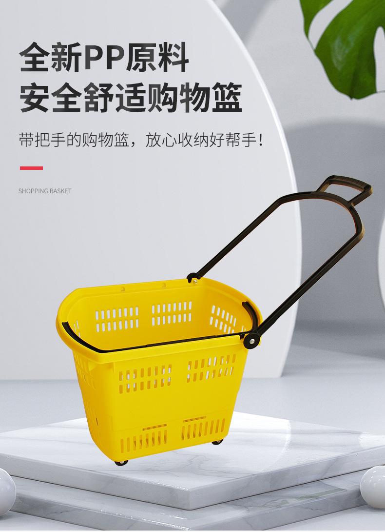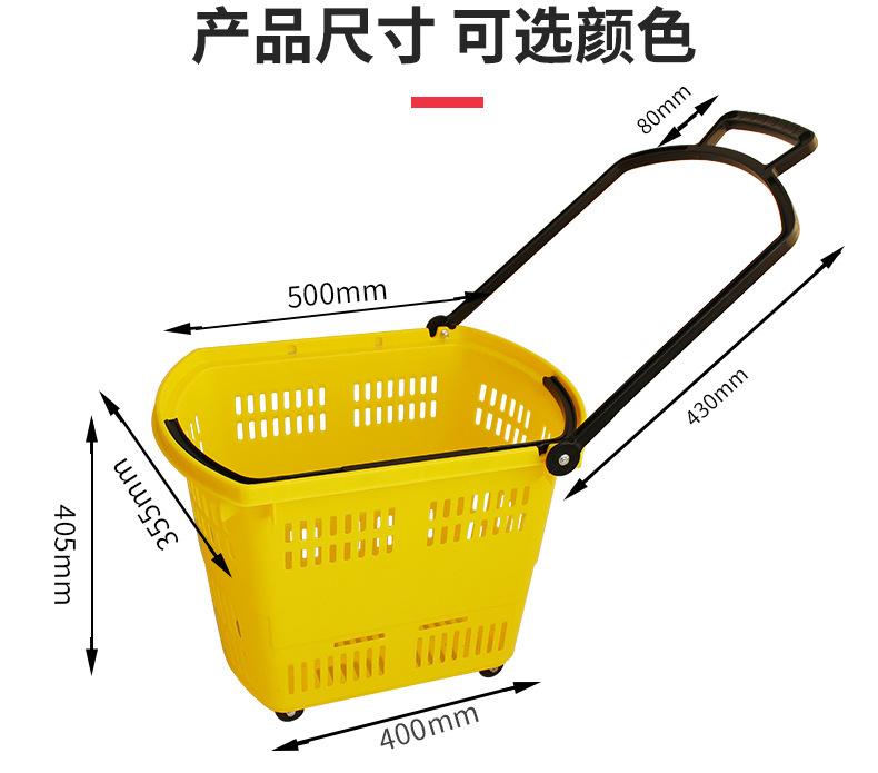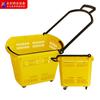 Cesta Amarilla con Ruedas de Mano Cesta de Compras de Supermercado Centro Comercial Tienda de Conveniencia Cesta de Plástico Grueso con Cesta de Mano con Ruedas
