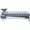 La peladora horizontal utiliza el eje principal para girar rápidamente e impulsar la barra de pegamento en el eje principal para realizar un movimiento espiral relativo, empujando las garras de las aves para que giren y avancen en el cilindro. La rotación espiral relativa de la barra de pegamento del eje principal y la espiral relativa de la ranura larga del cilindro se invierten, creando una fuerza inversa en las garras que avanzan para lograr el golpe y la fricción de las garras de las aves de corral, de modo que se elimina la piel amarilla en la superficie de las garras de las aves de corral. Durante el trabajo, la tubería de entrada de agua del cilindro superior se abre para facilitar el desprendimiento de la piel amarilla de las garras de las aves de corral, y la tubería de entrada de agua en la placa de soporte inferior se abre para facilitar la caída suave de la piel amarilla de las garras de las aves de corral que ingresan a la placa de soporte inferior.