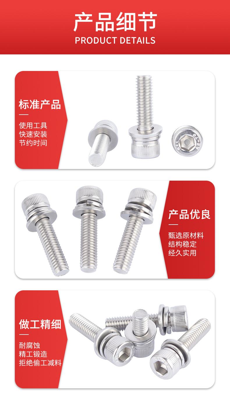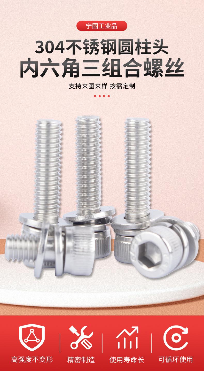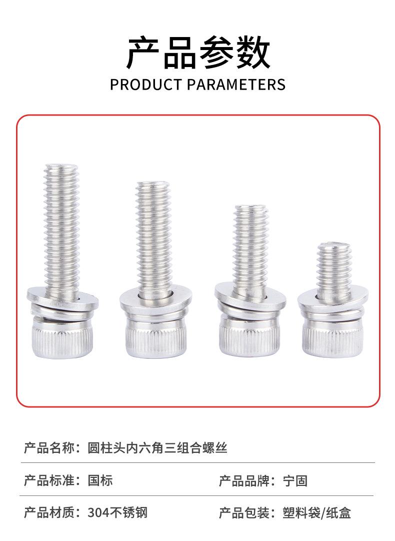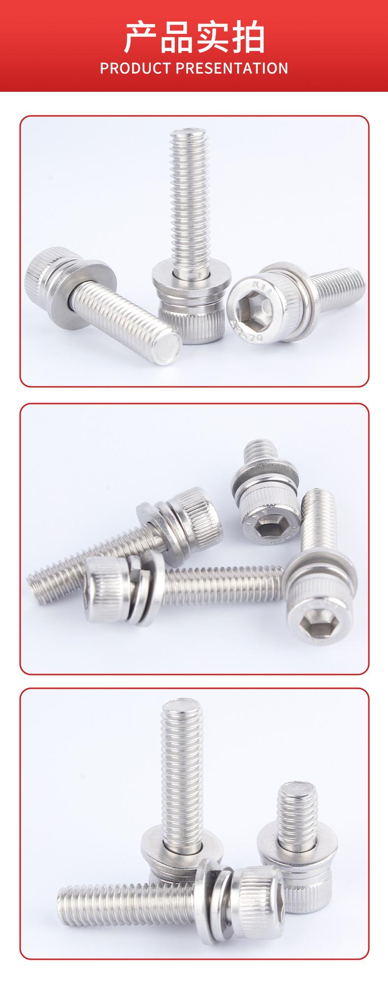 Tornillo de cabeza cilíndrica hexagonal de tres combinaciones, acero inoxidable 304, DIN912, cabeza ahuecada, M2-M12