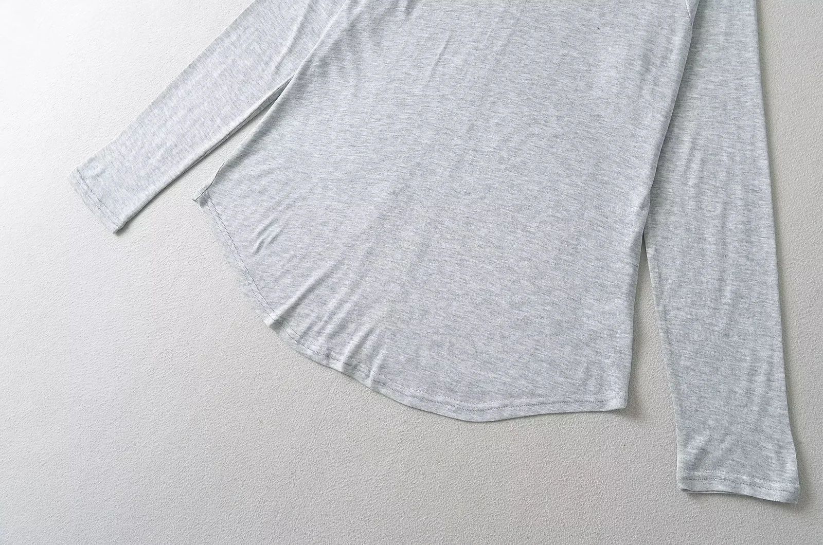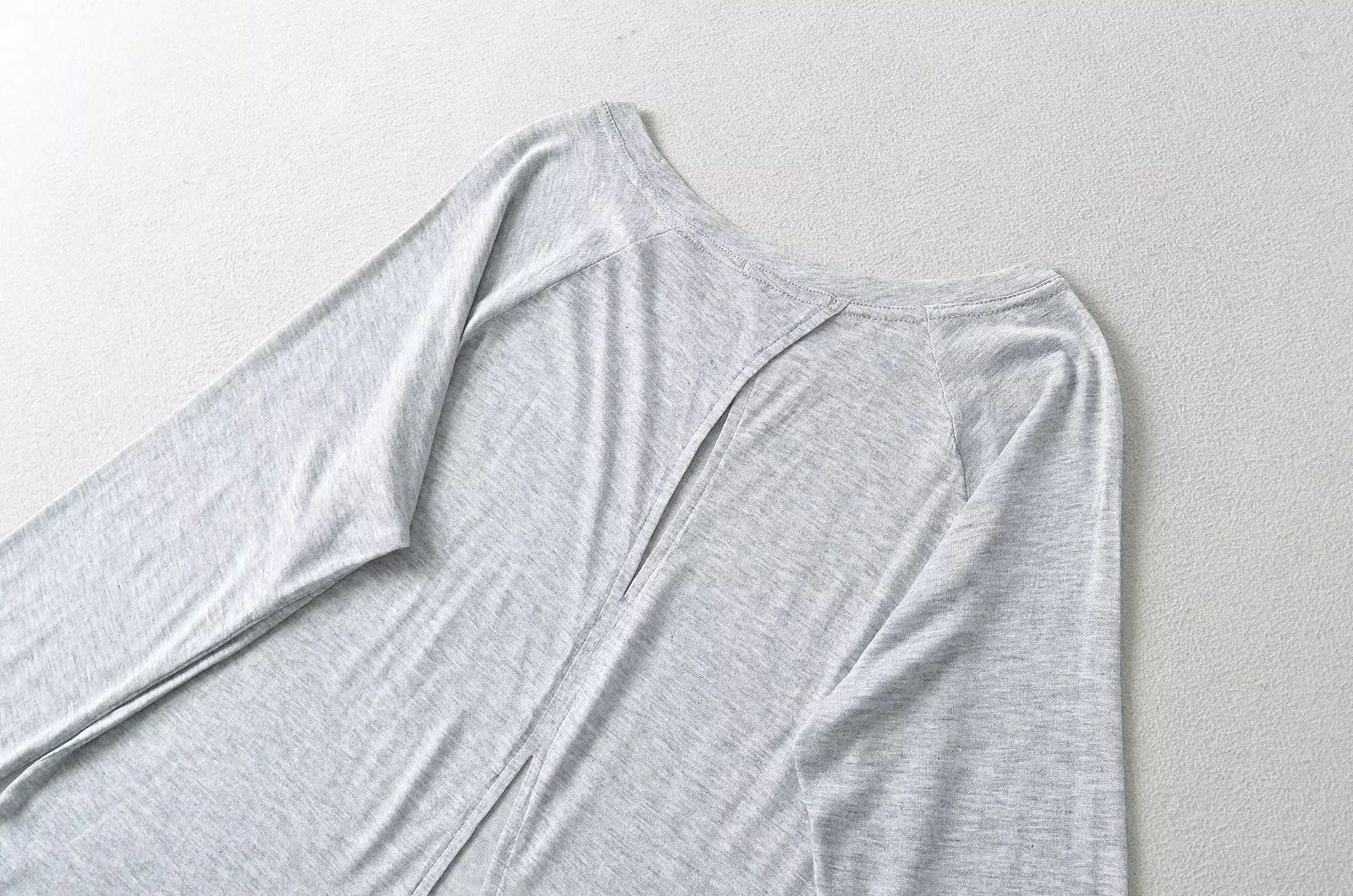 Ropa de Mujer Transfronteriza Blusa Grande Holgada Casual Europea y Americana Otoño Top de Mujer Espalda Hueca Abertura Camiseta de Manga Larga