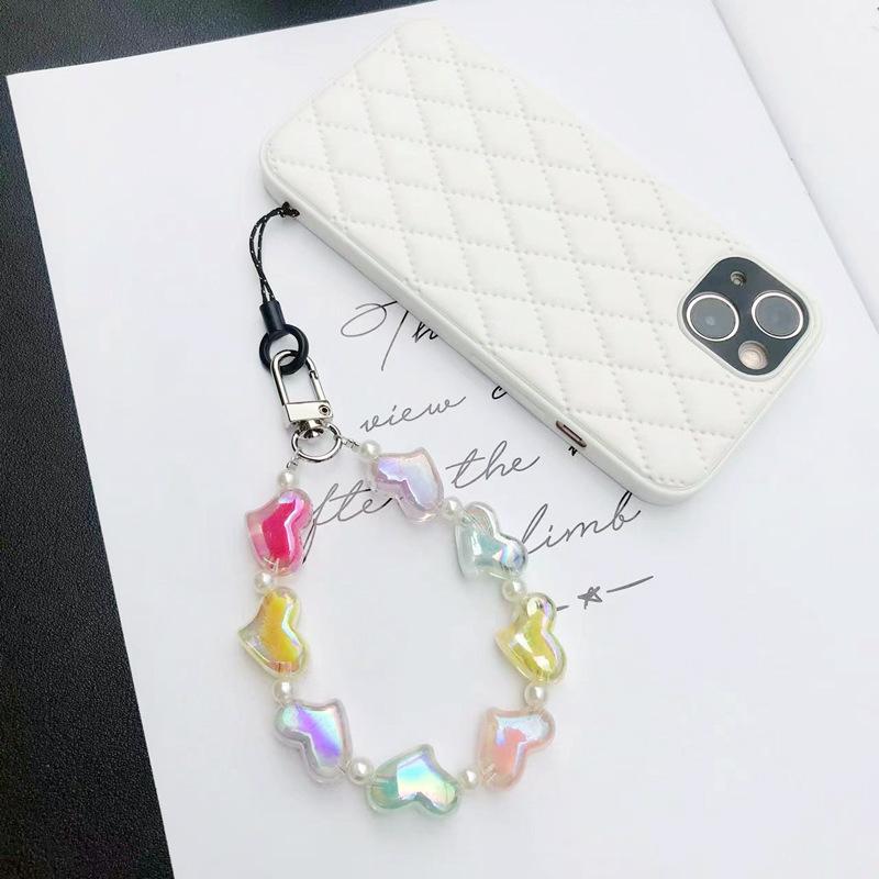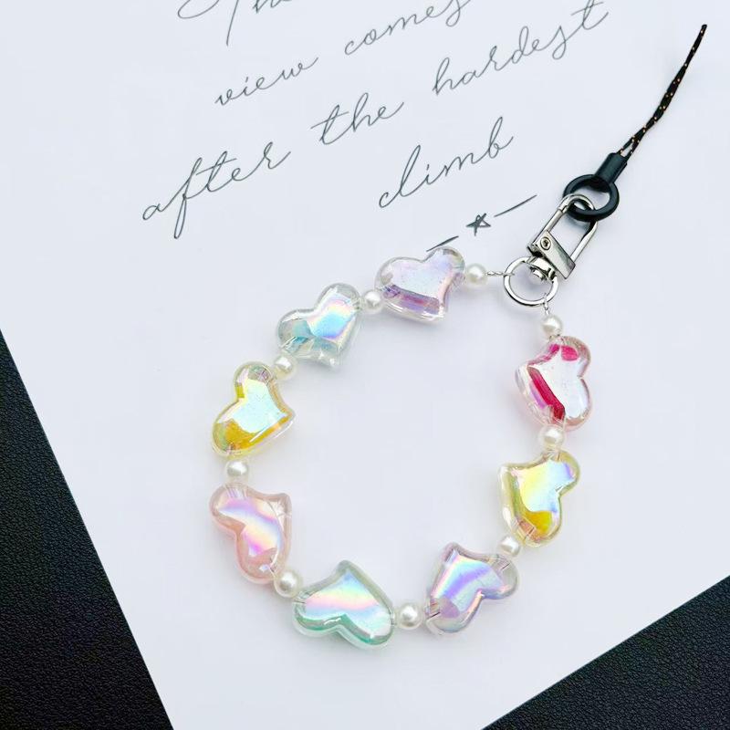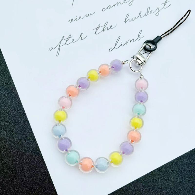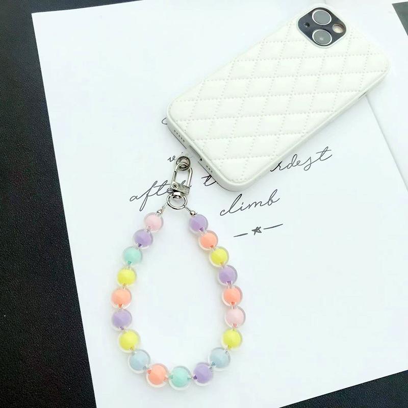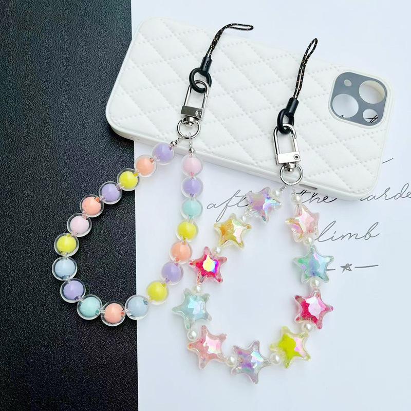 Cordón universal para teléfono móvil en color caramelo con cuentas de amor, cadena portátil para muñeca femenina con forma de estrella de cinco puntas para Huawei y Apple.