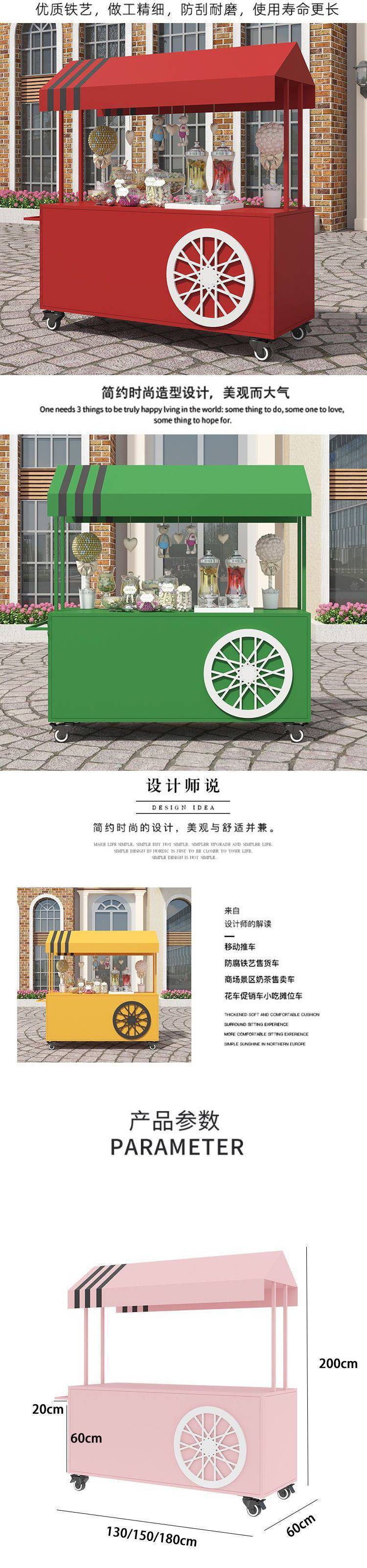 Mercado nocturno, carrito móvil de flores de hierro forjado, carrito para puesto al aire libre, carrito comercial de refrigerios, camión expendedor, carrito de comedor, puesto de desayuno