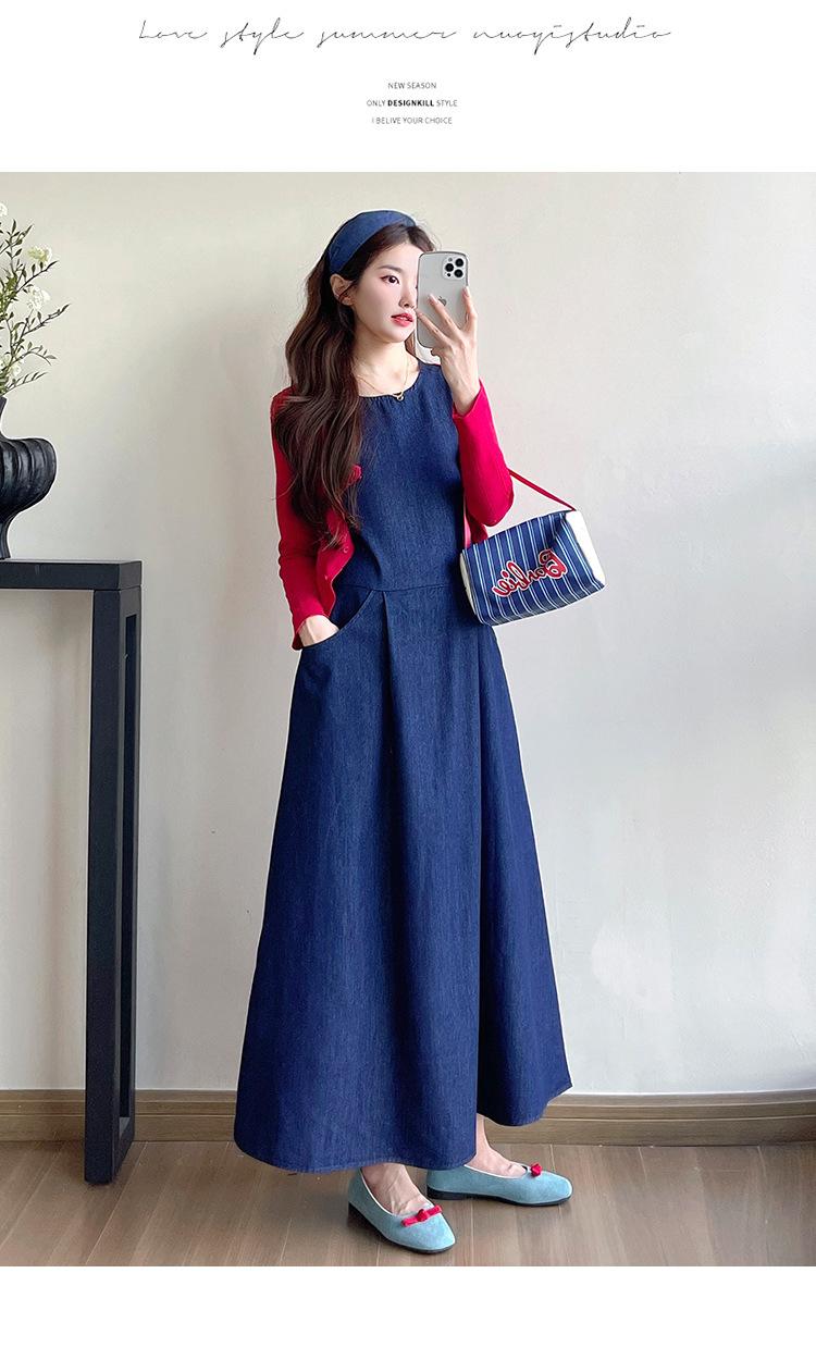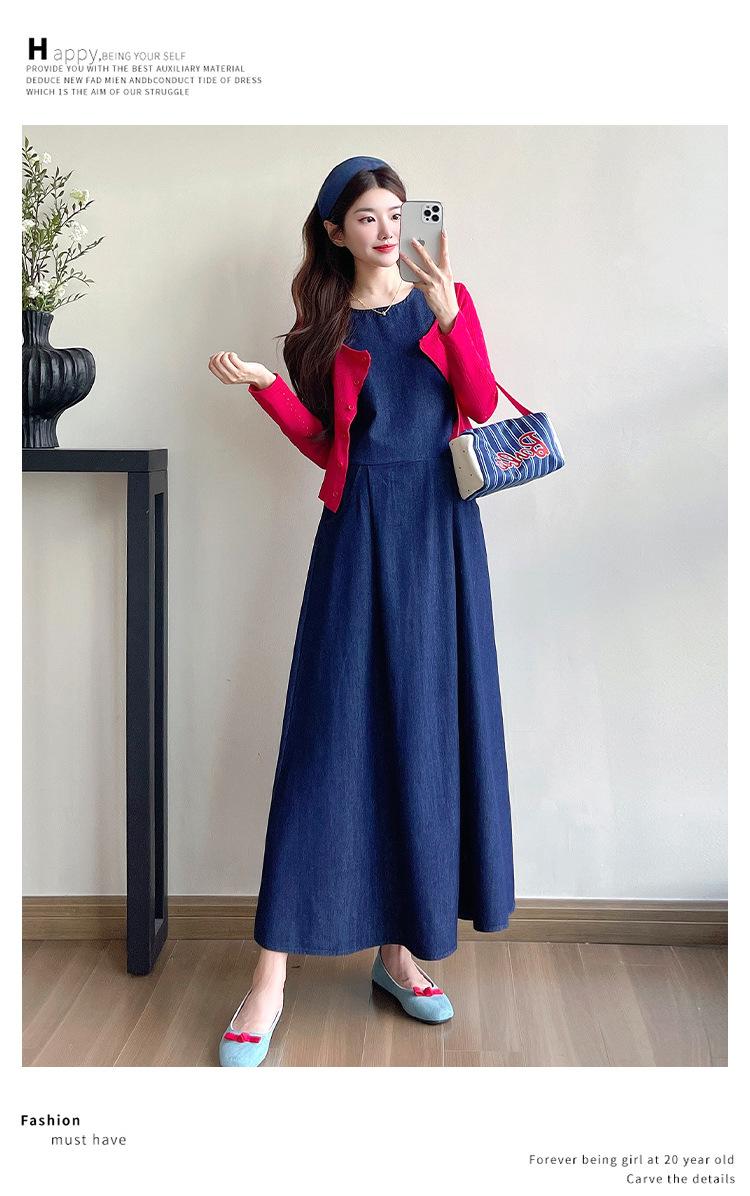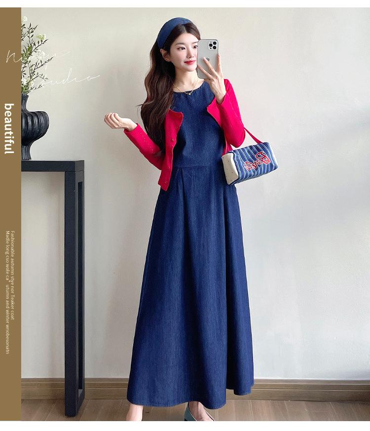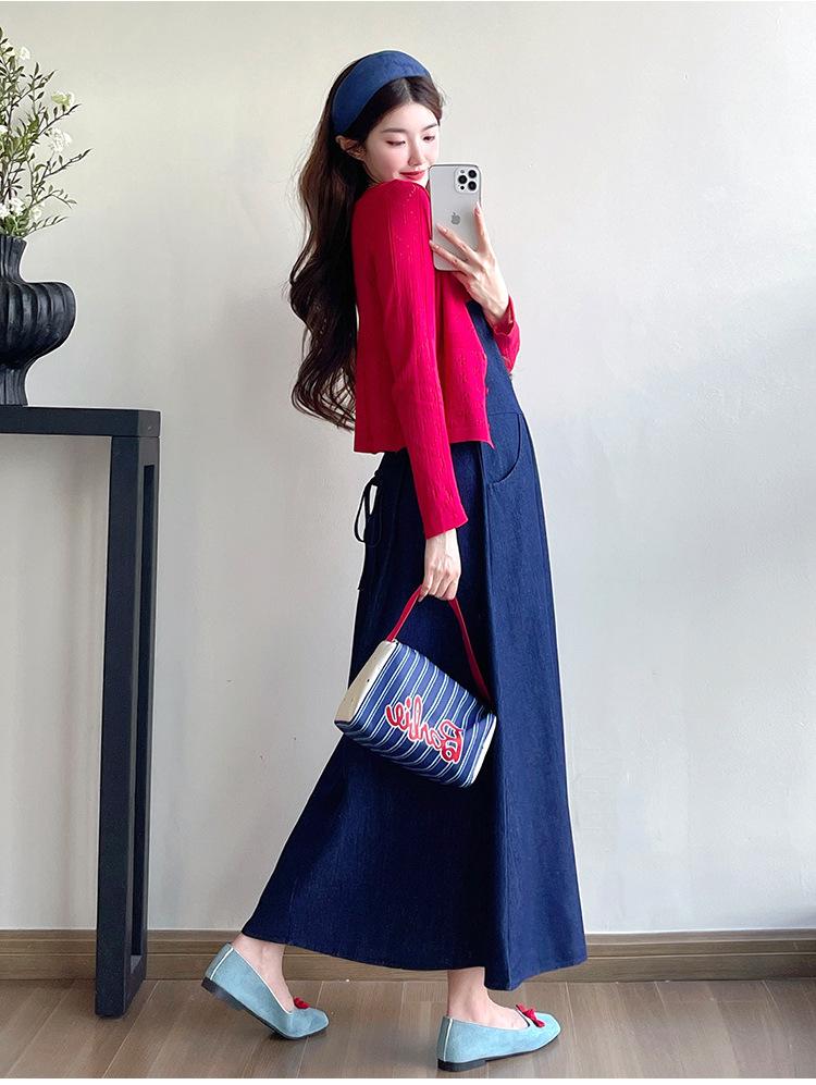 Denim sundress, Red thread cardigan