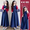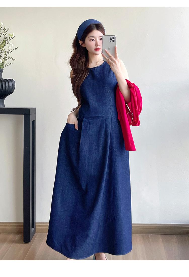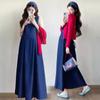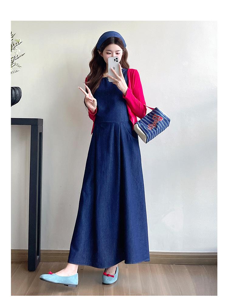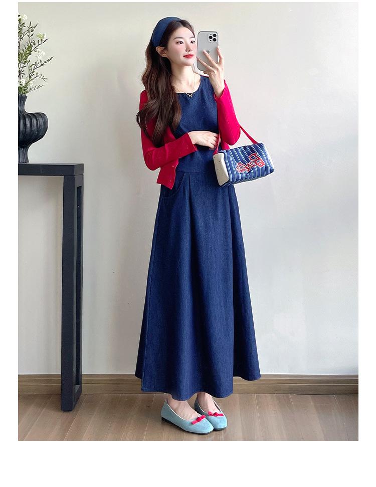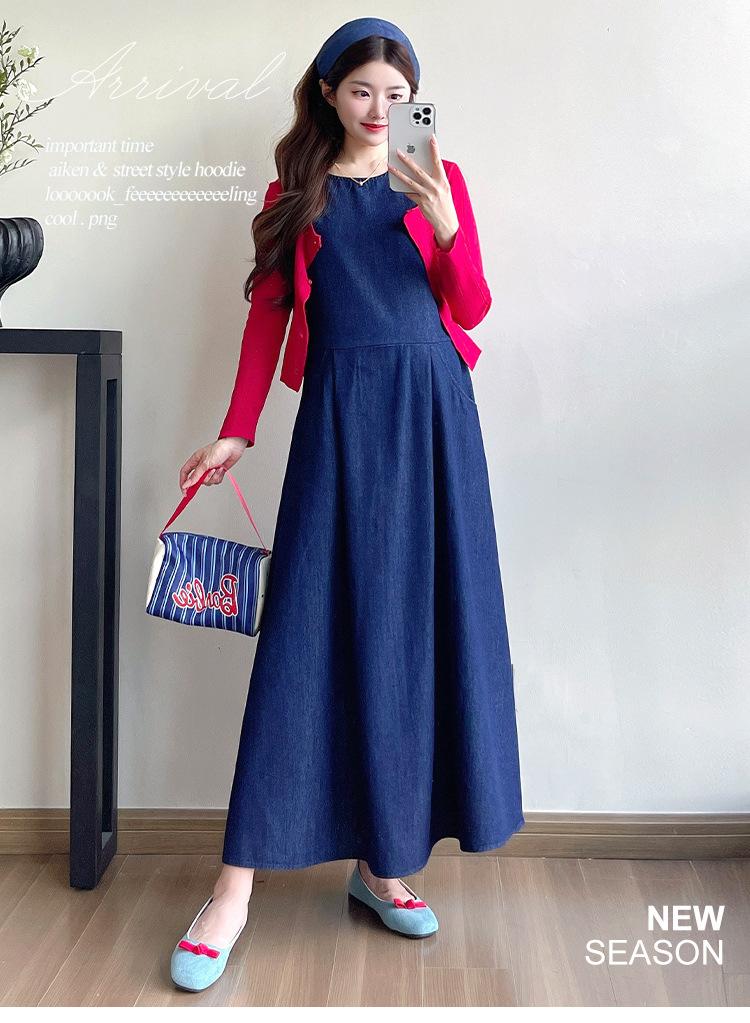 Denim sundress, Red thread cardigan