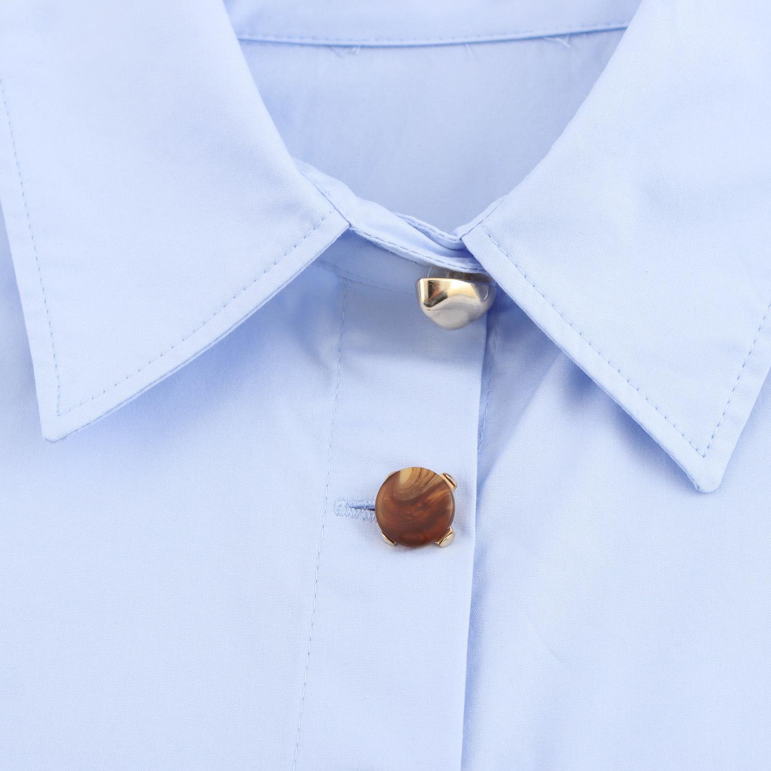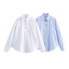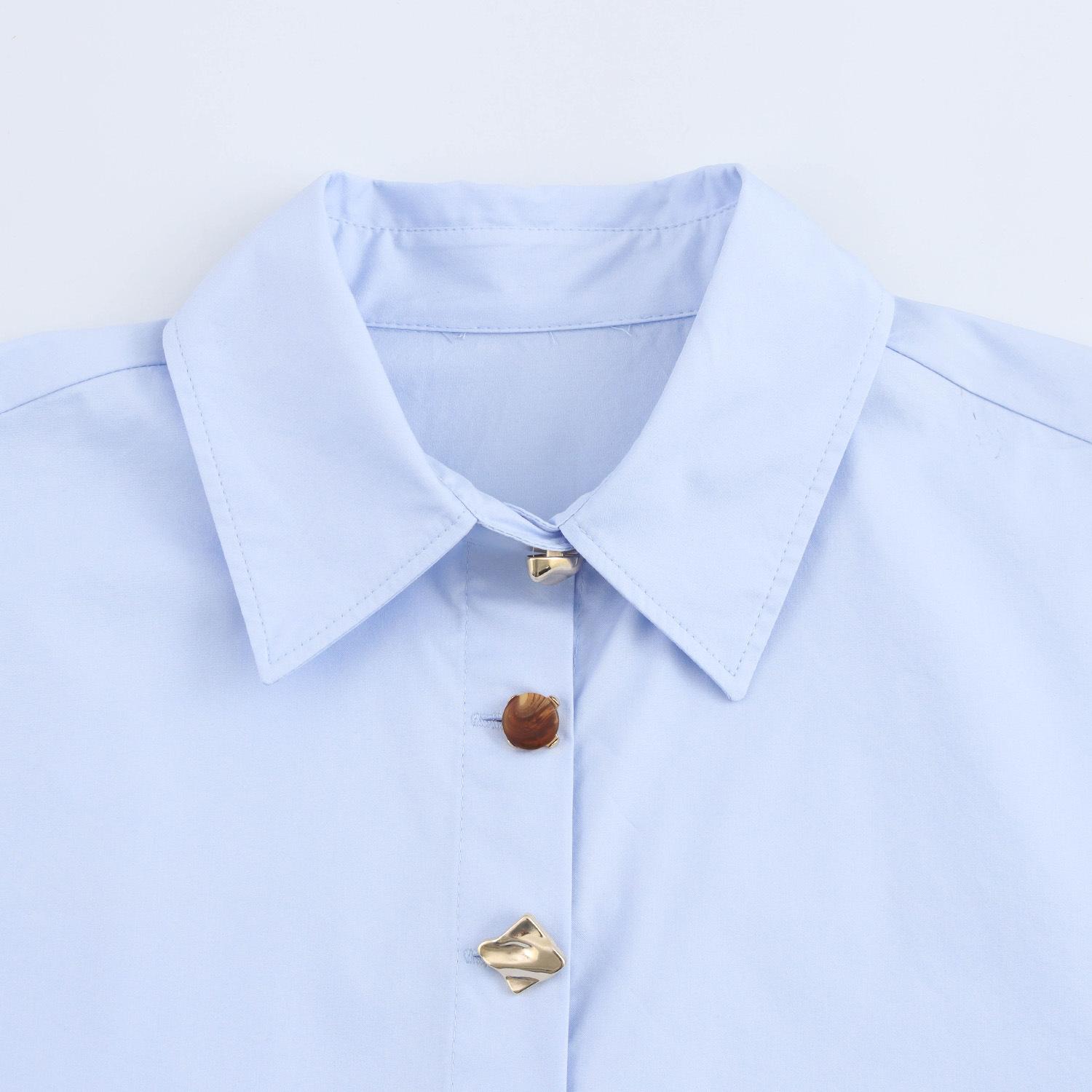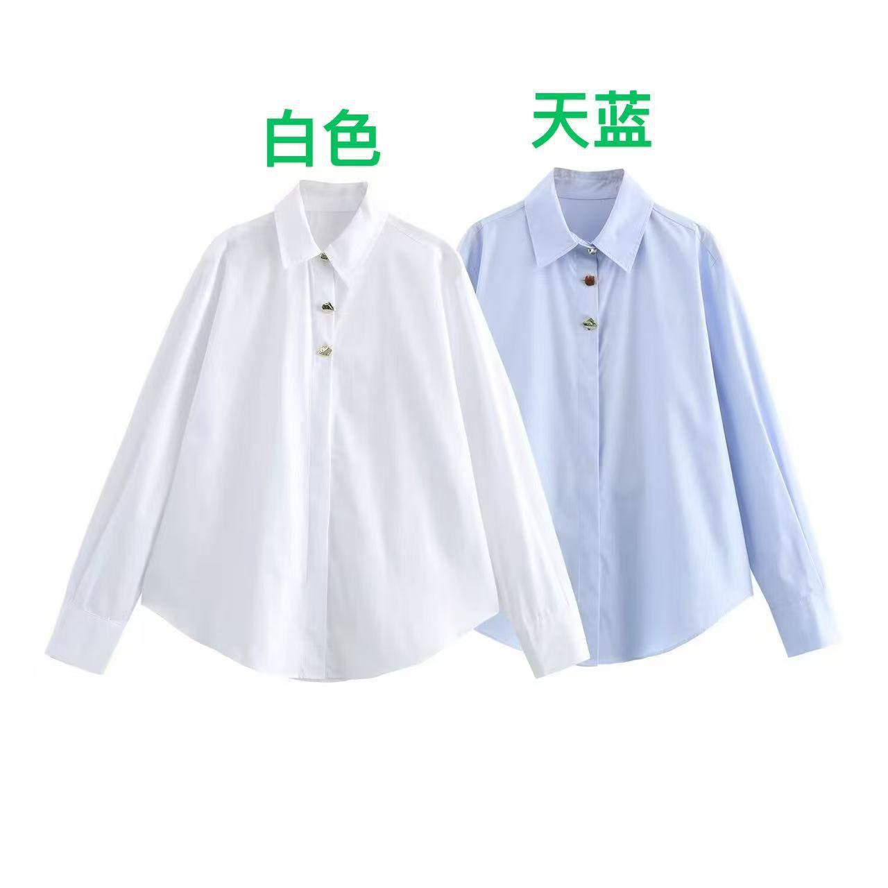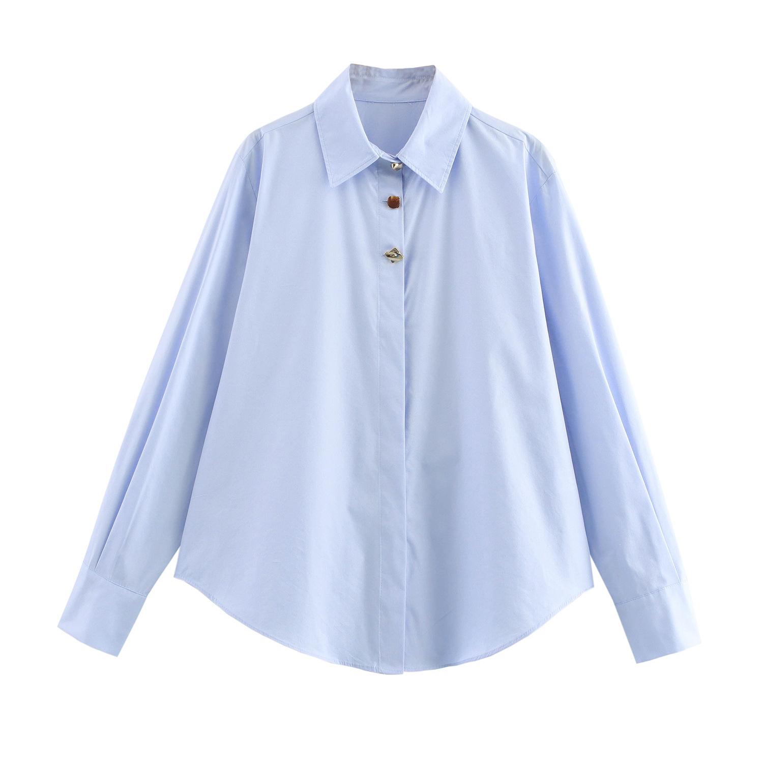 Camisa popelina color sólido solapa botón dorado manga larga mujer holgada mayoreo 2025 primavera y verano transfronteriza europea y americana camisa