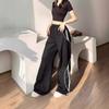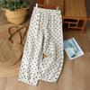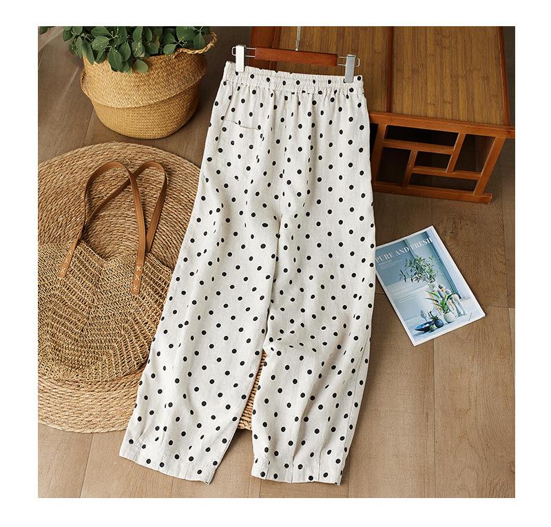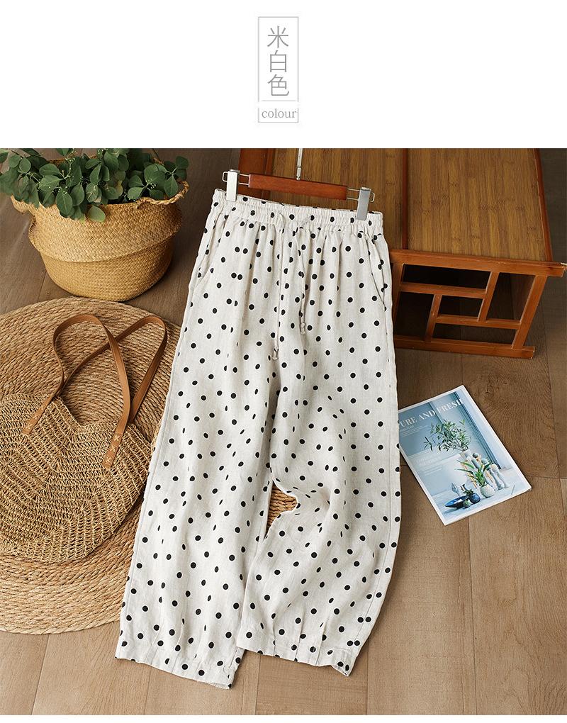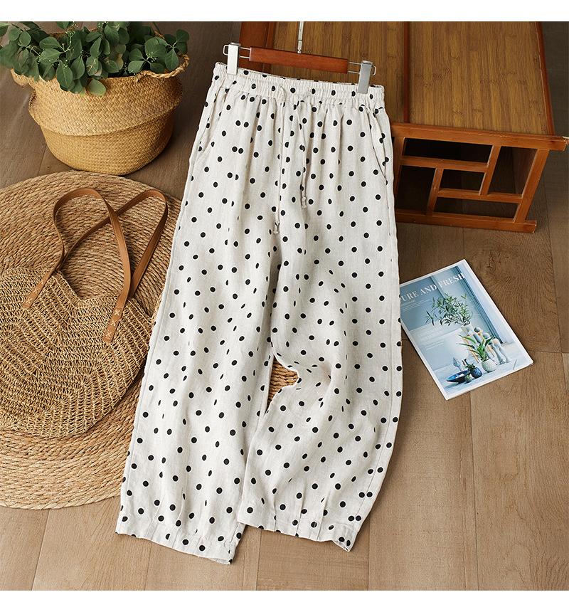 3371 foto real 2024 verano nuevo punto de onda cáñamo pantalones de pierna ancha pantalones de punto retro literarios de verano para mujer pantalones sueltos