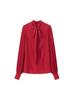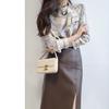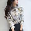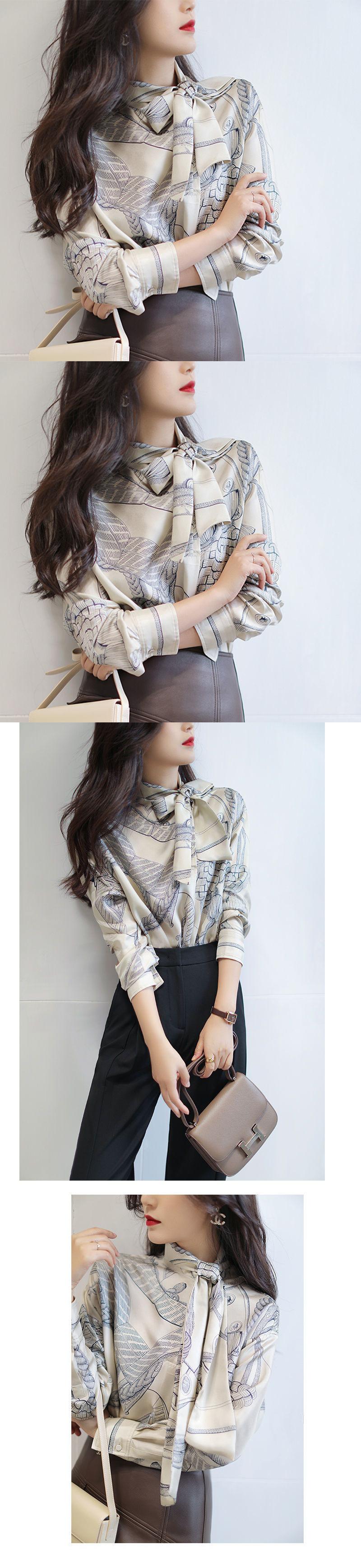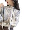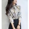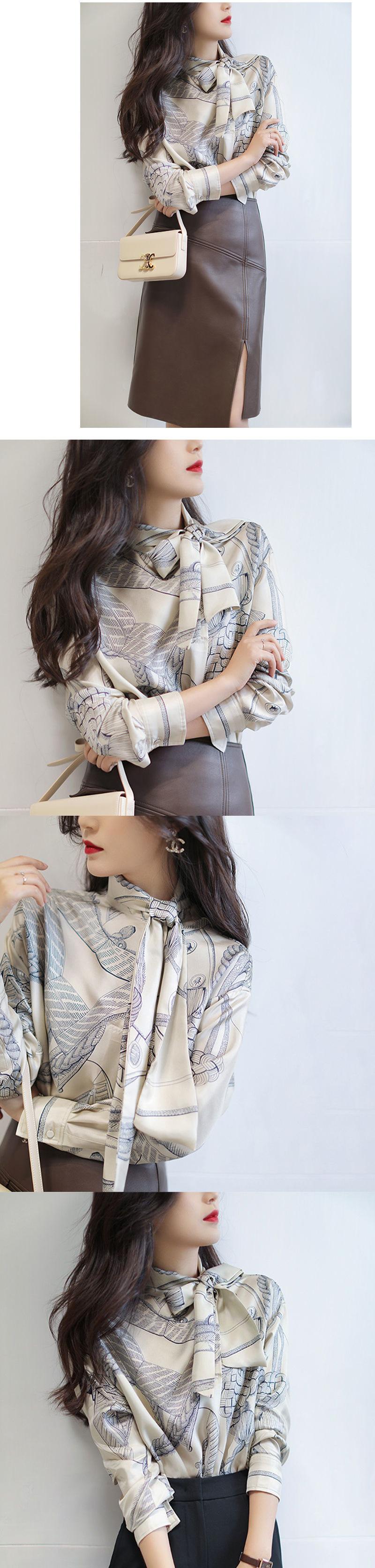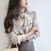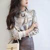 Camisa de mujer de manga larga, nueva llegada de primavera 2025, camisa estampada con lazo, diseño holgado, top francés