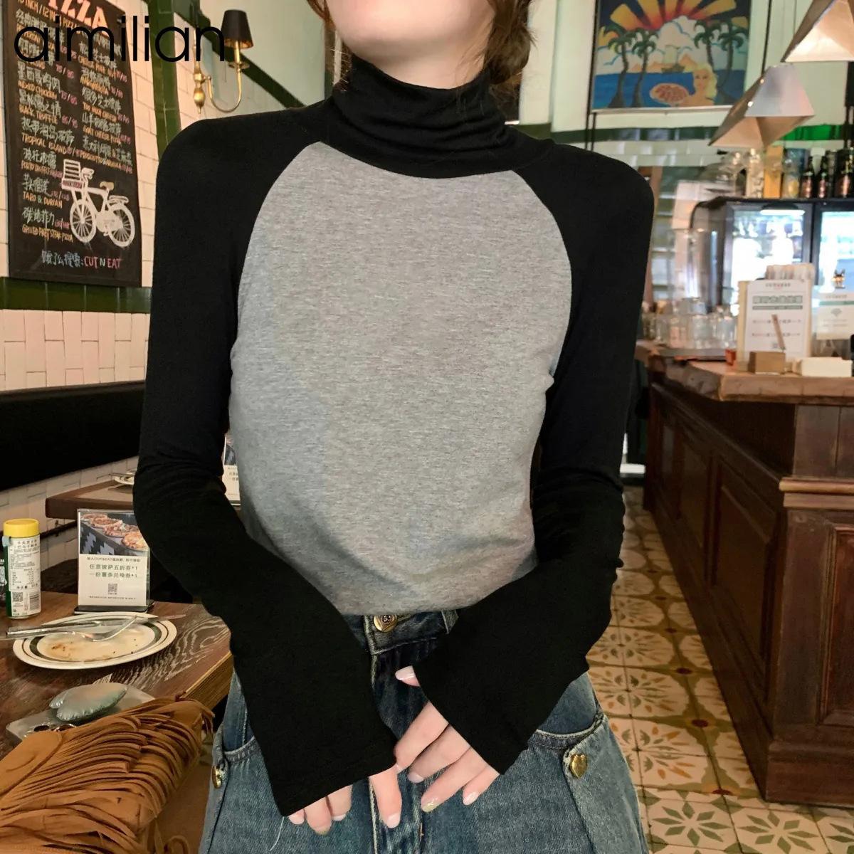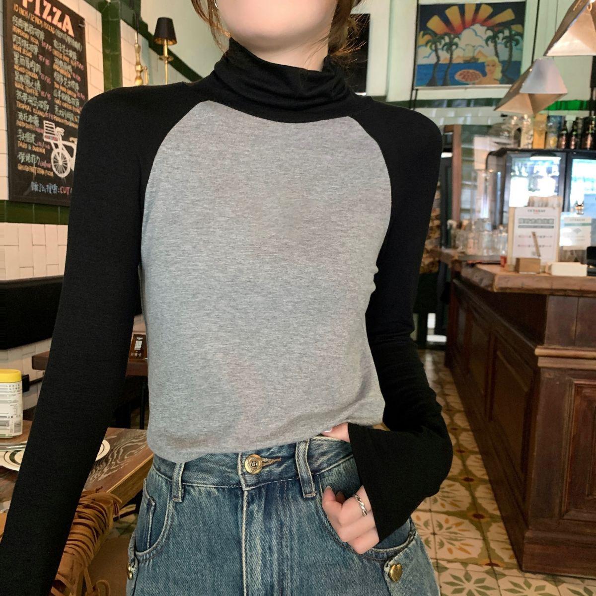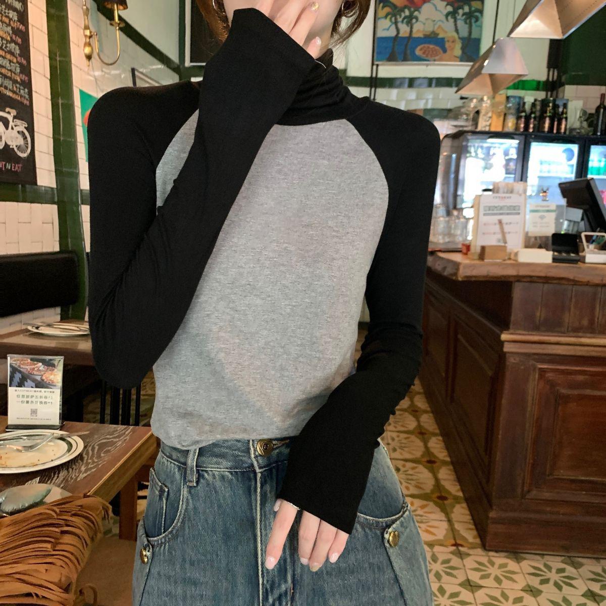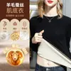 Camiseta térmica de cuello alto para mujer, nuevo estilo otoño e invierno 2025, cuello alto, forro polar, gruesa, top de manga larga de alta gama