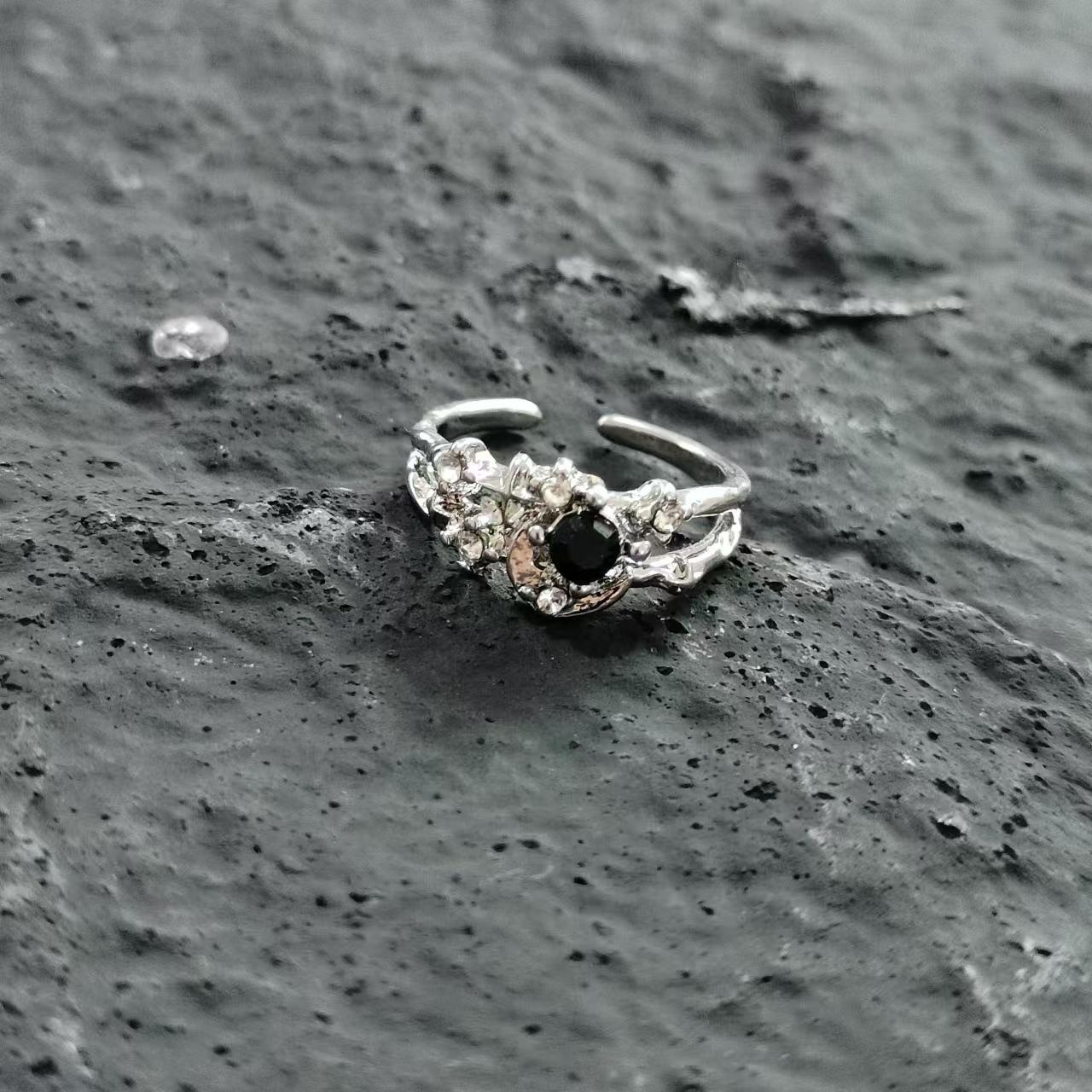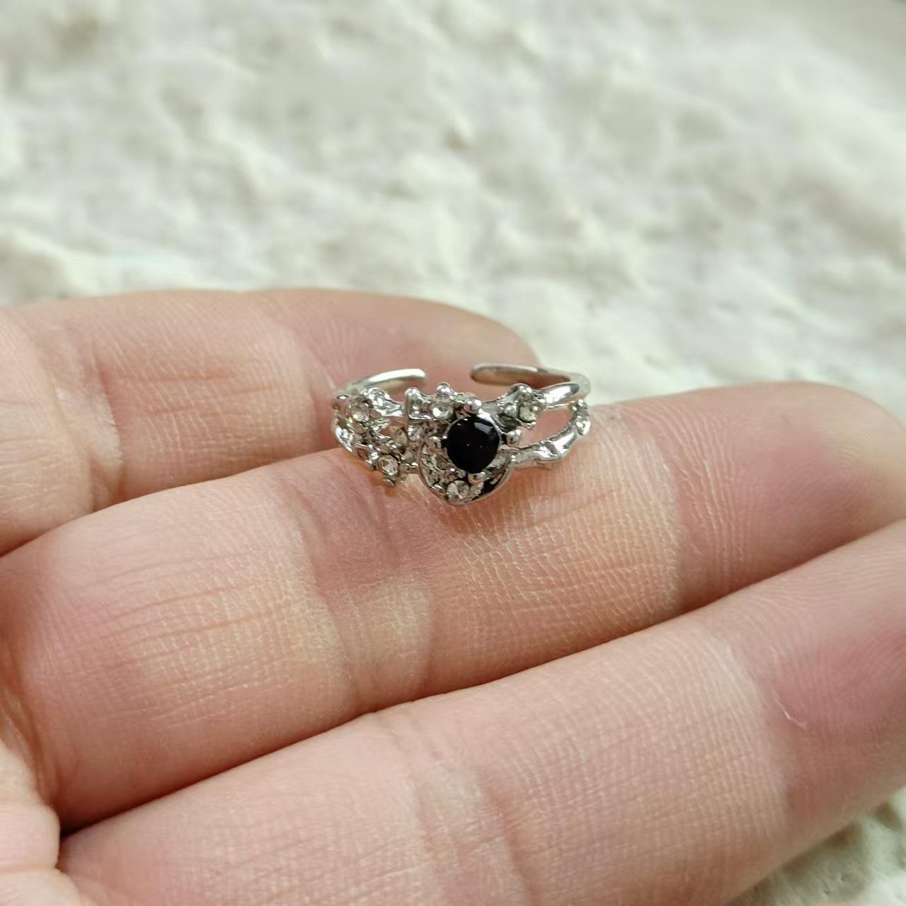 Anillo de gema de metal de lava plisado de personalidad de moda europea y americana para hombre, moderno, hip-hop, nicho, juego de anillos transfronterizo, joyería de mano