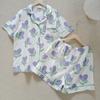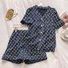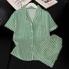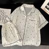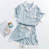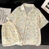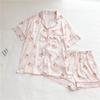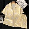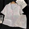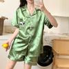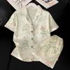 Pijamas de mujer europeos y americanos transfronterizos, pantalones cortos de manga corta de seda de hielo de verano 2025, nuevo traje de ropa para el hogar de alta gama que se puede usar al aire libre