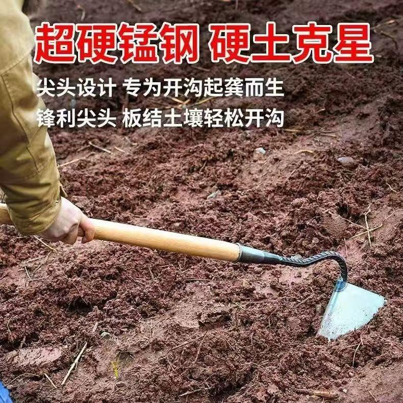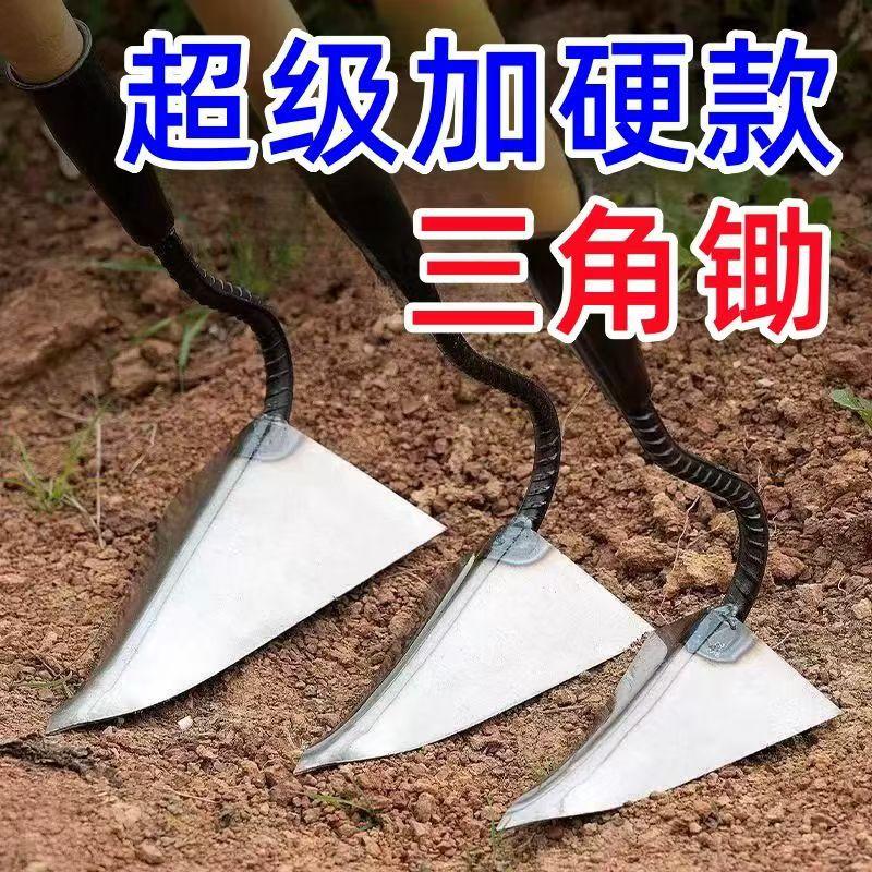 Azada puntiaguda engrosada de acero al manganeso artefacto triangular para zanjas aflojador de suelo boca puntiaguda azada para verduras herramientas de agricultura de plántulas pala azada para zanjas al por mayor