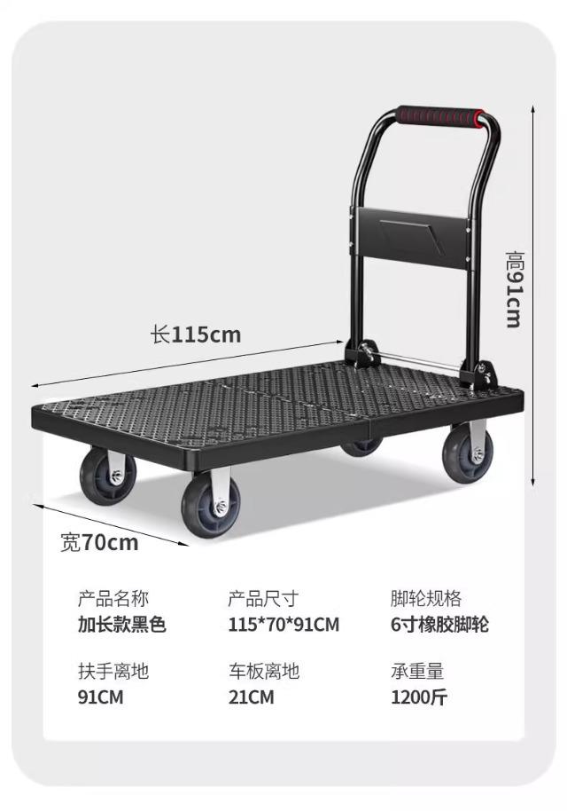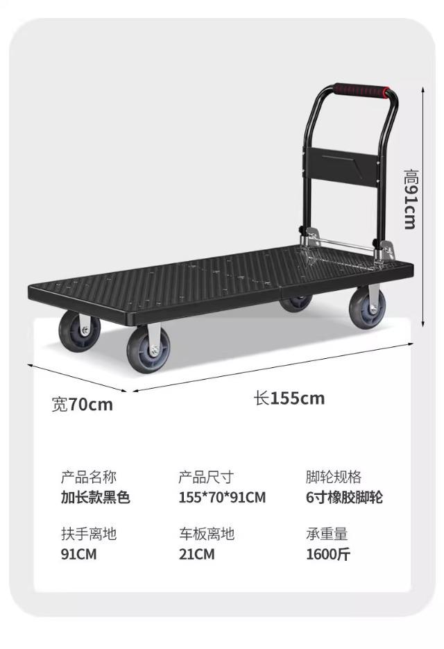 Black large 90*60 wear-resistant and fall-resistant car plate [5inch rubber wheels with bearings]