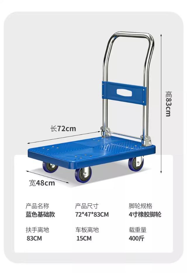 Blue large 90*60 wear-resistant and fall-resistant car plate [5inch rubber wheels with bearings]