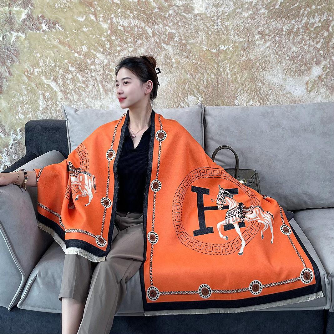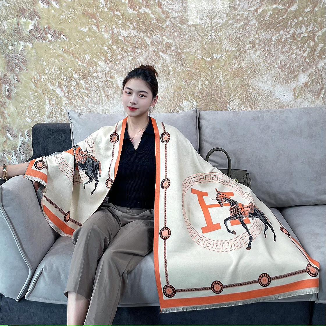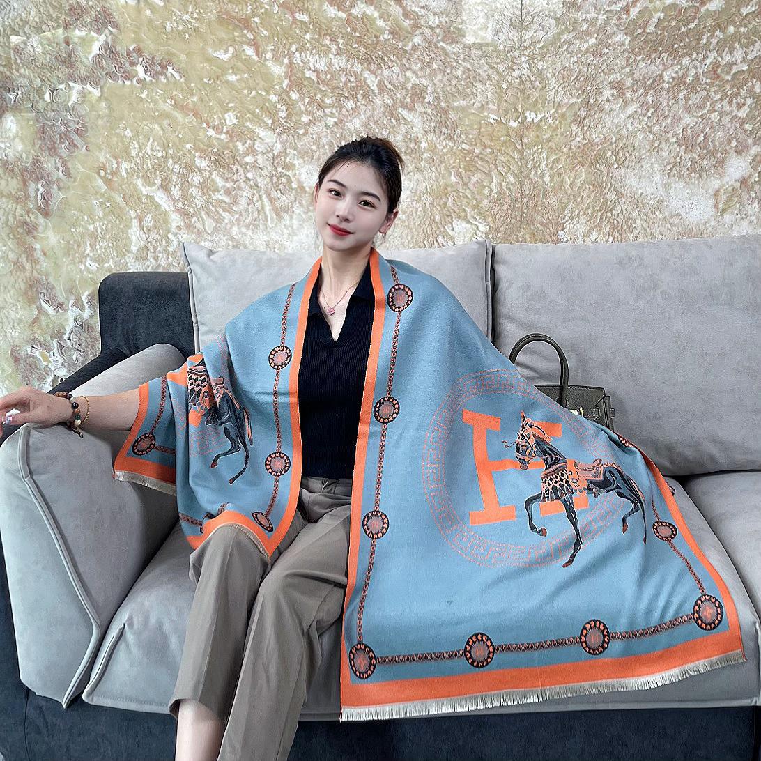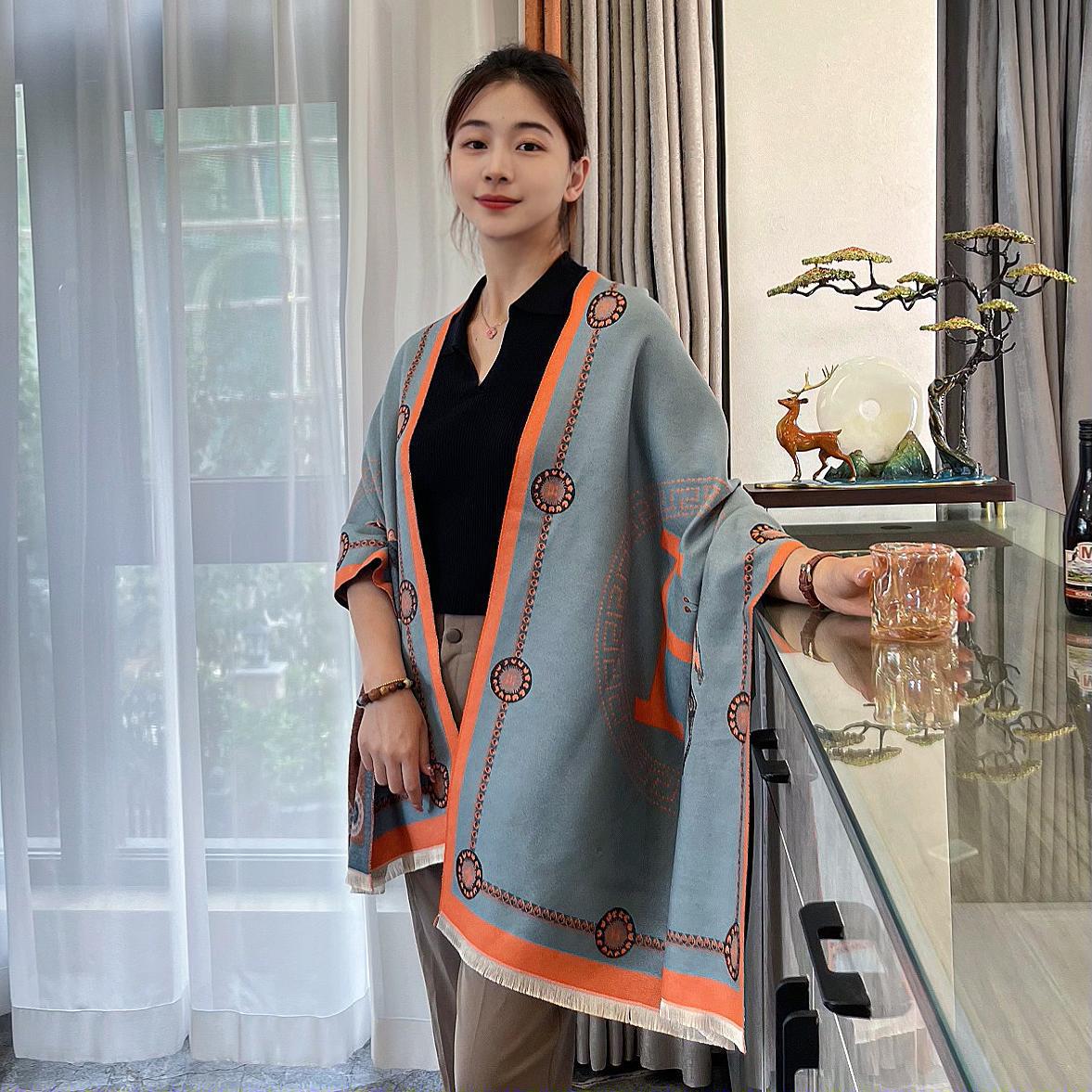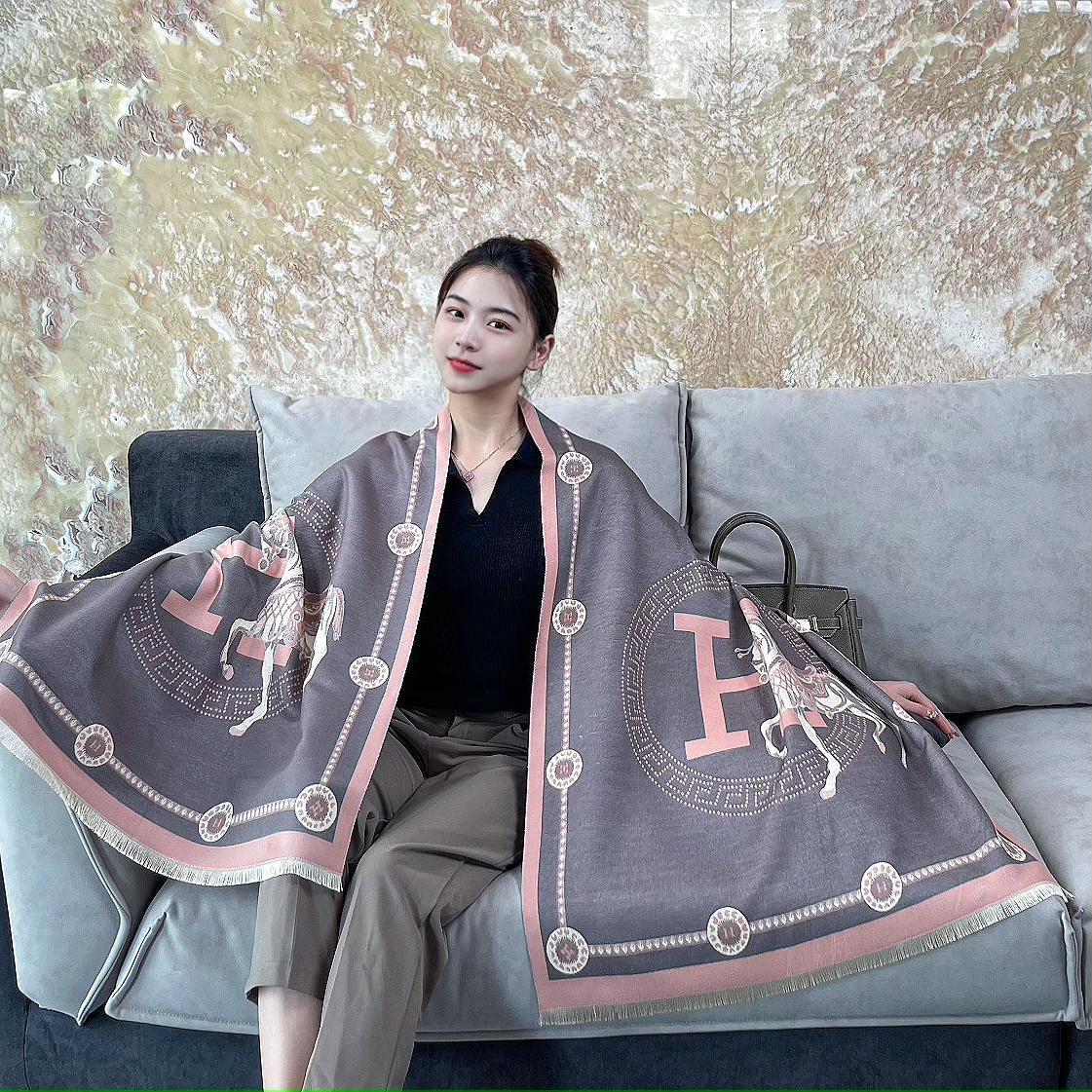 Algodón Nuevo H Cachemira Bufanda de Marca Grande para Mujer Invierno Cálida Larga Gruesa Bufanda Carruaje Doble Uso Moda