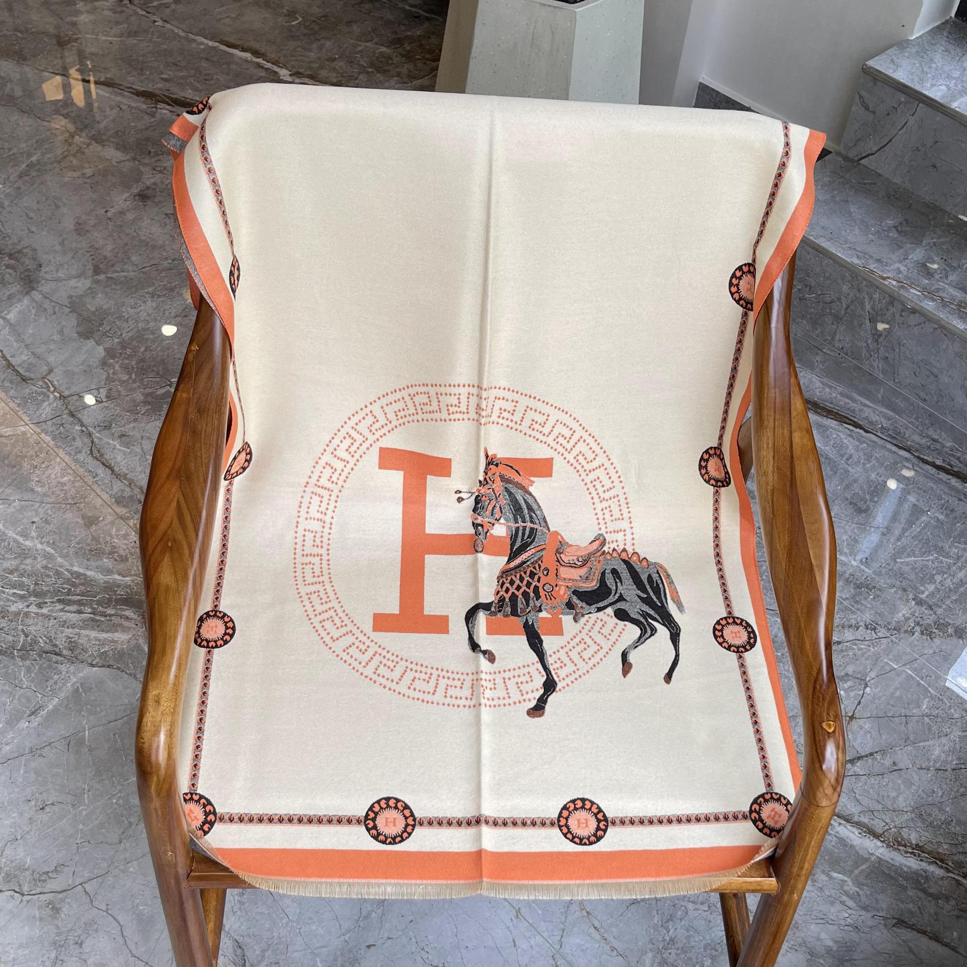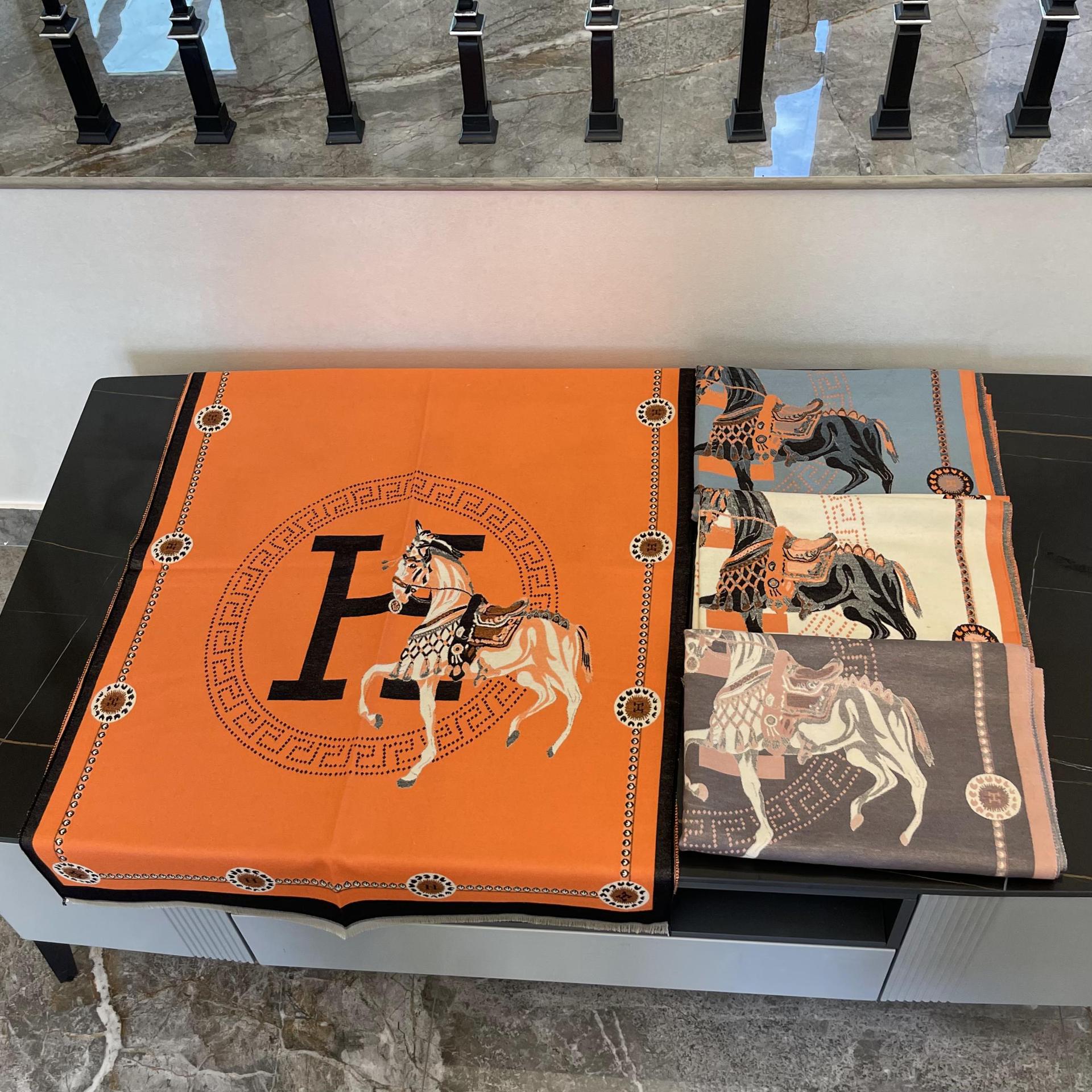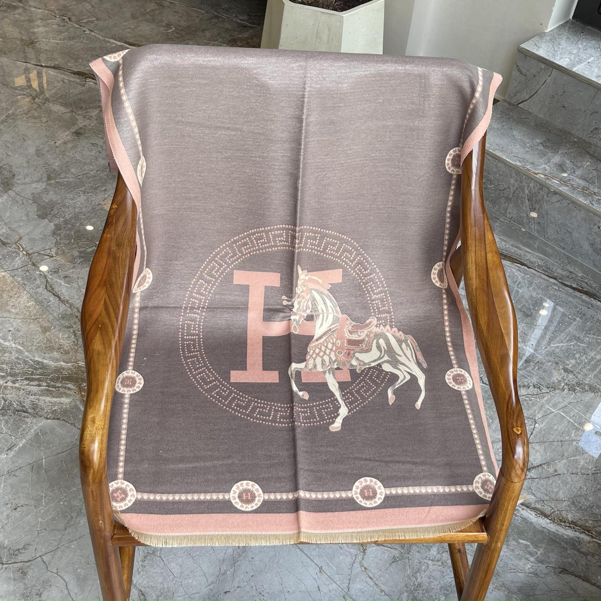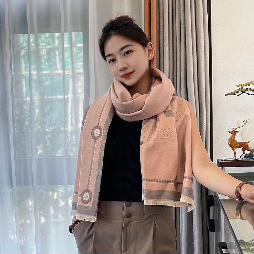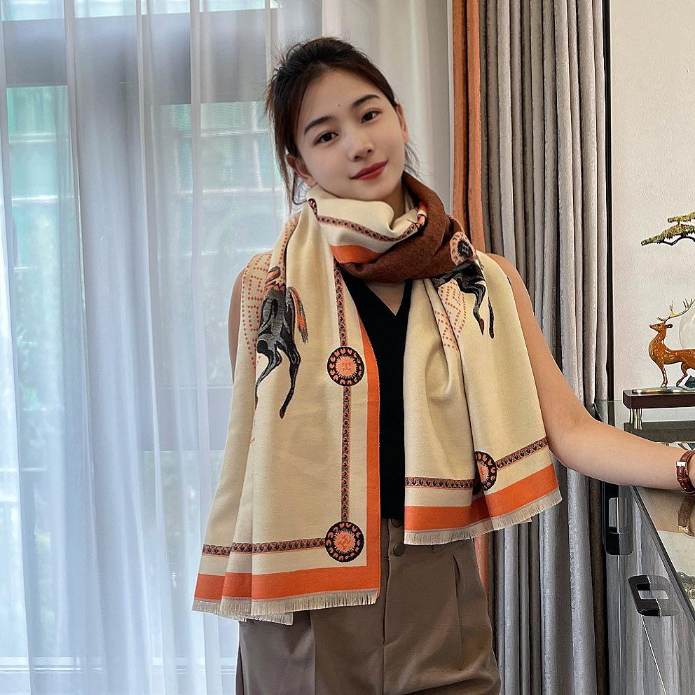 Algodón Nuevo H Cachemira Bufanda de Marca Grande para Mujer Invierno Cálida Larga Gruesa Bufanda Carruaje Doble Uso Moda