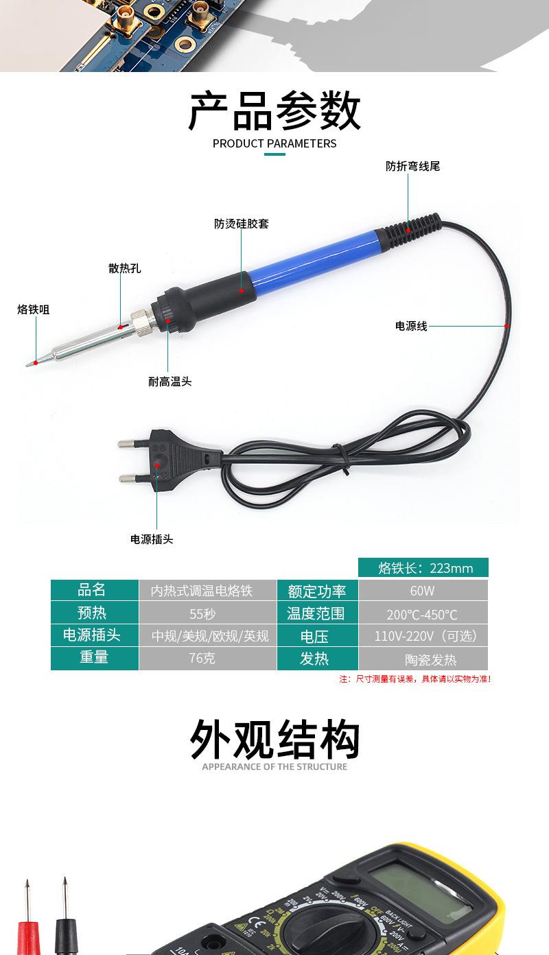 Juego de herramientas para soldar eléctrico con calefacción interna de 60 W de gran venta transfronteriza, 17 piezas, bolígrafo de soldadura industrial con temperatura ajustable