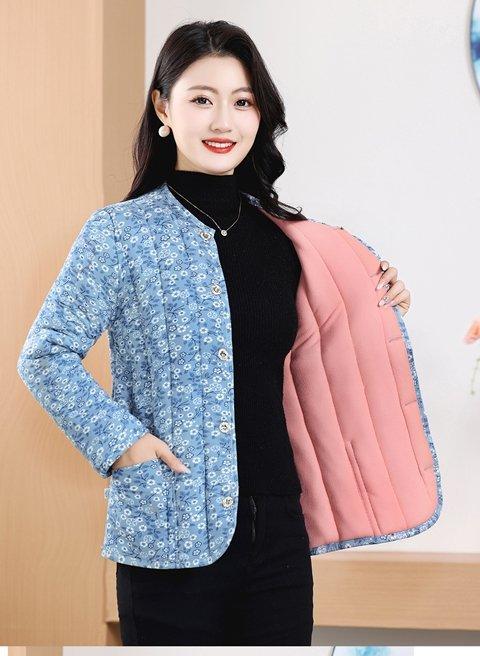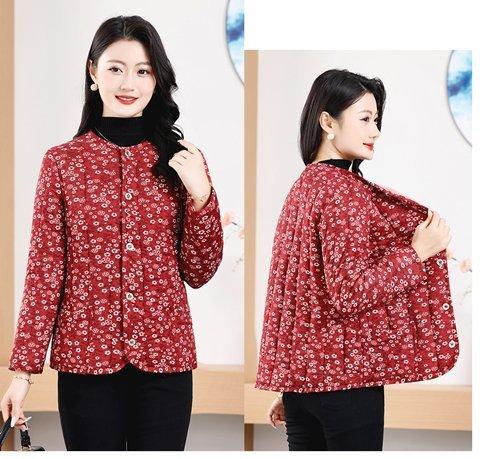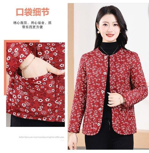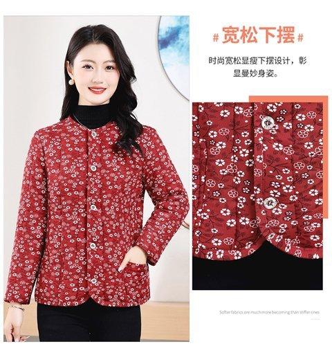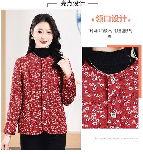 Chaqueta acolchada de algodón con estampado floral para madres de mediana edad y mayores, chaqueta acolchada de algodón cálida para el hogar en invierno para mujeres mayores, chaqueta acolchada de algodón de lana de camello
