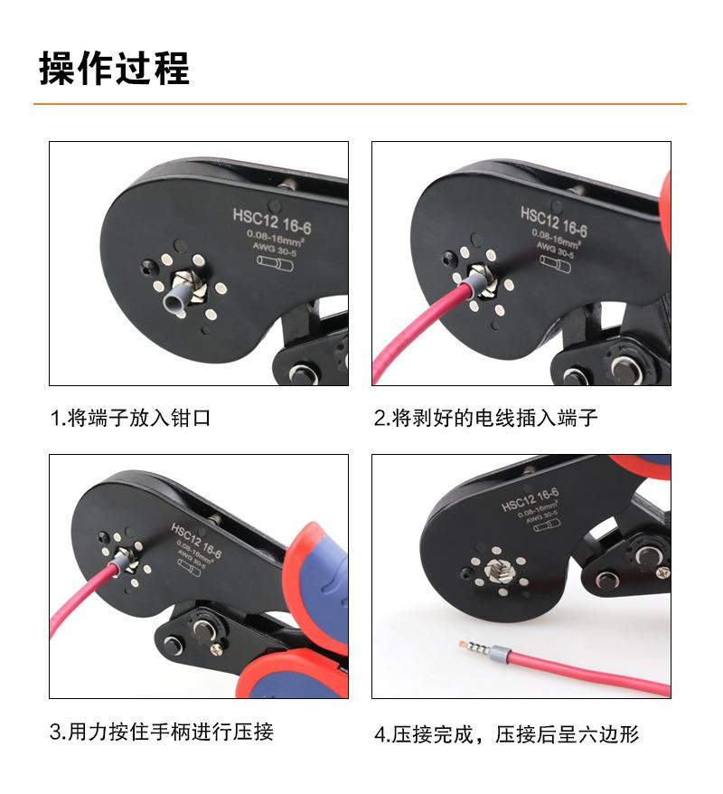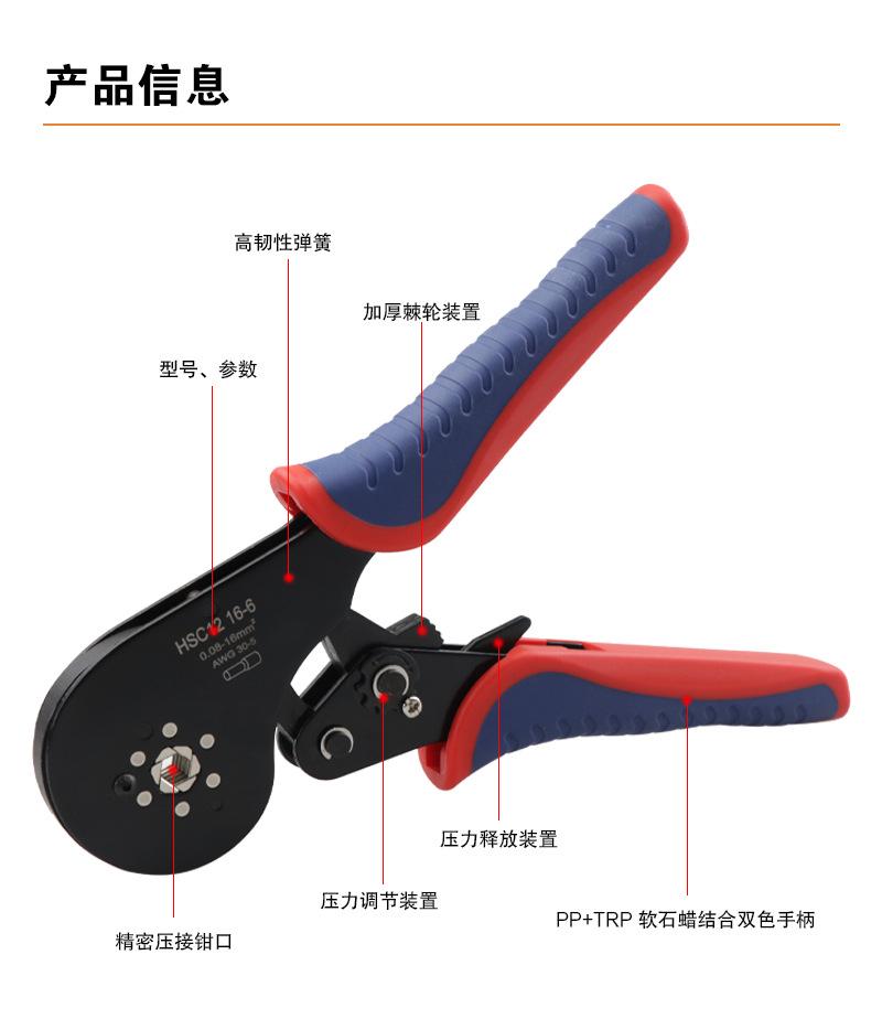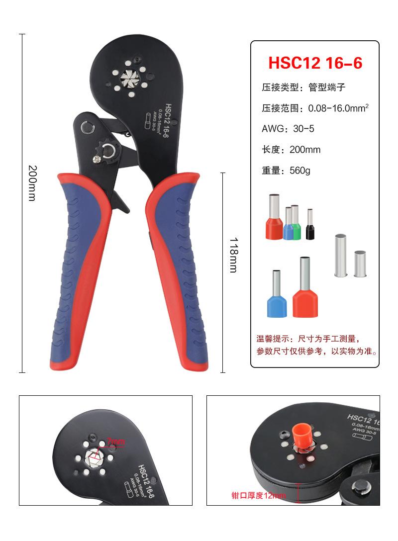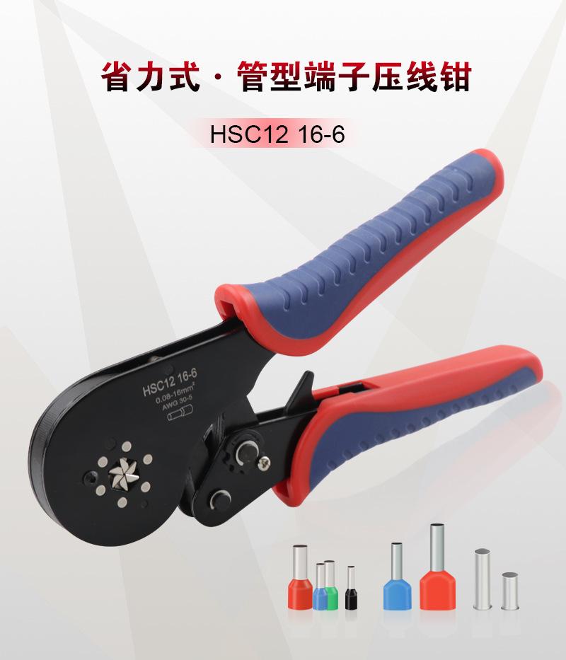 Alicates de crimpado de terminales aislados tipo tubo Alicates de crimpado de terminales de prensado en frío tipo aguja de 6 lados HSC12 16-6