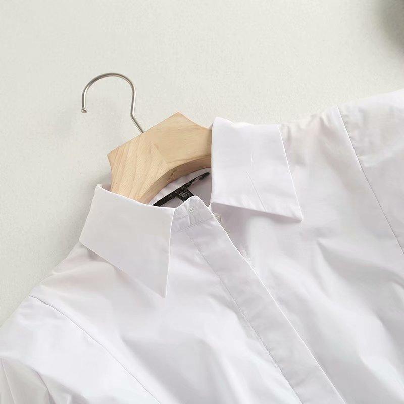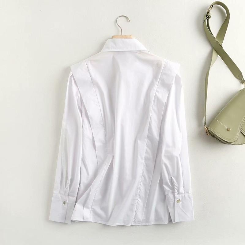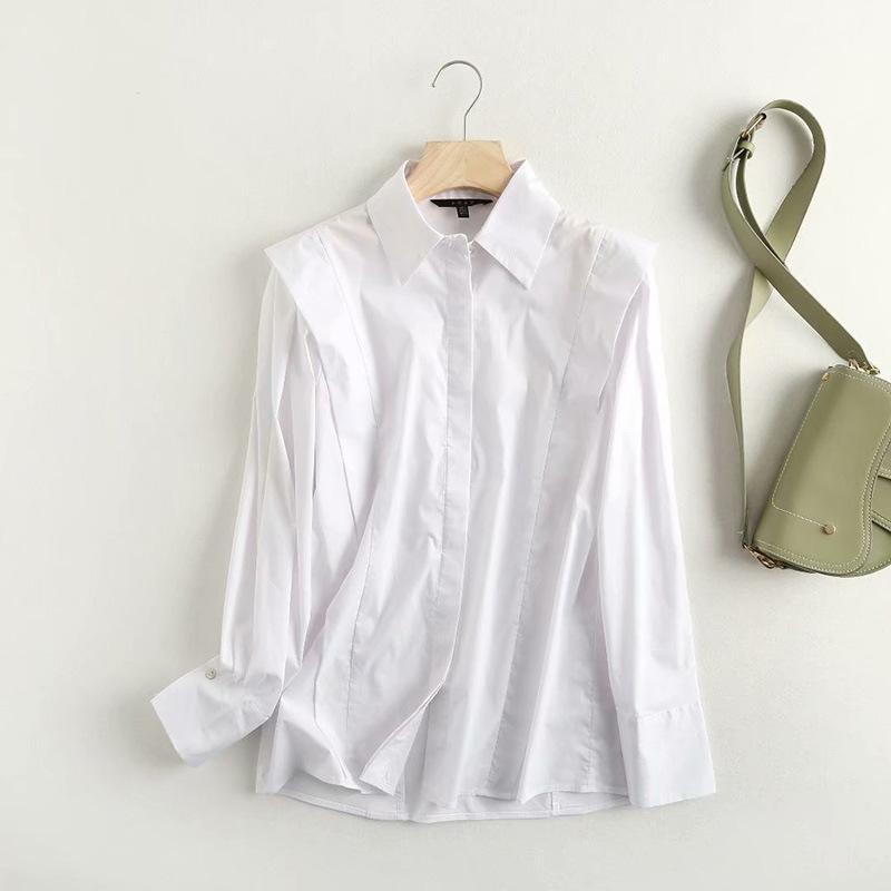 Ropa de Mujer Estilo Europeo y Americano 2020 Otoño Blusas Elegantes de Manga Larga Diseño de Color Liso Popelina Camisa Blanca de Mujer