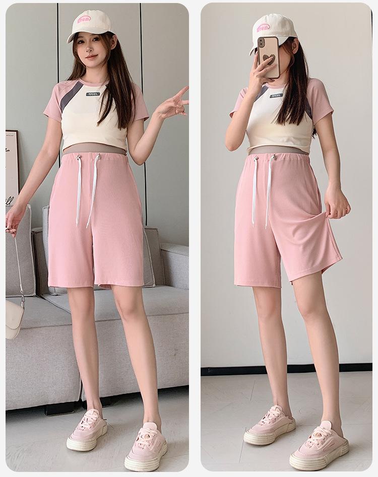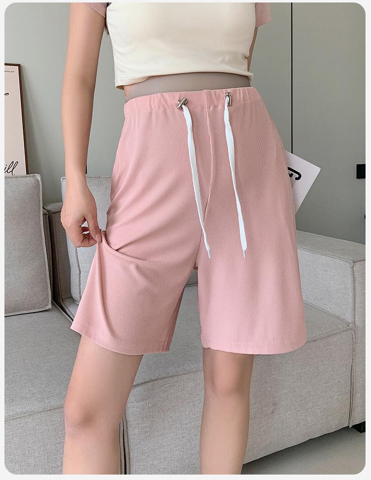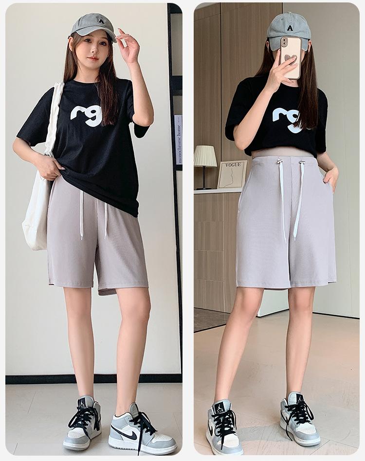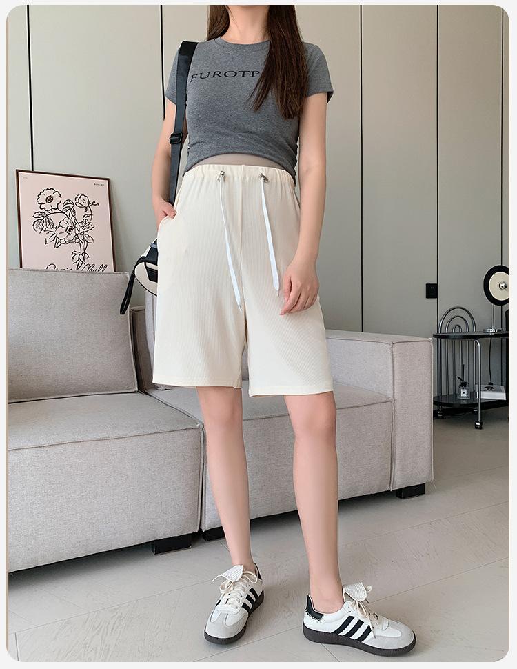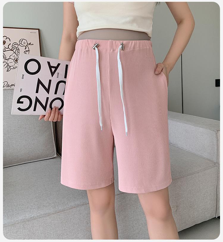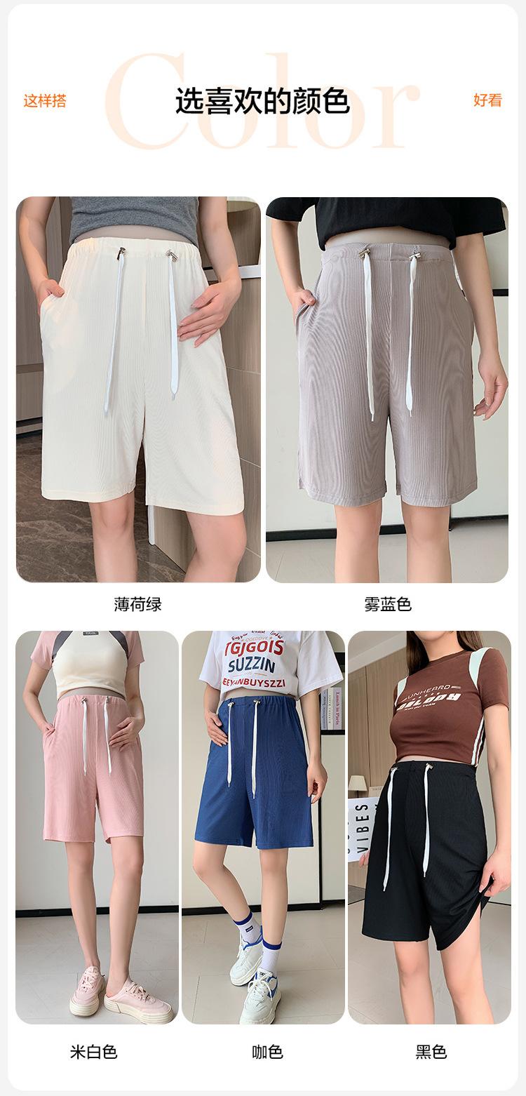 Después de dar a luz, también se pueden usar pantalones cortos de pierna ancha para mujeres embarazadas, pantalones casuales de seda helada para mujer 2024.
