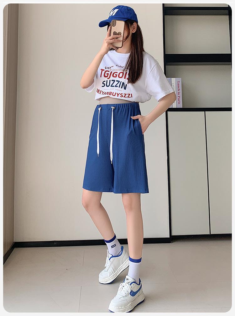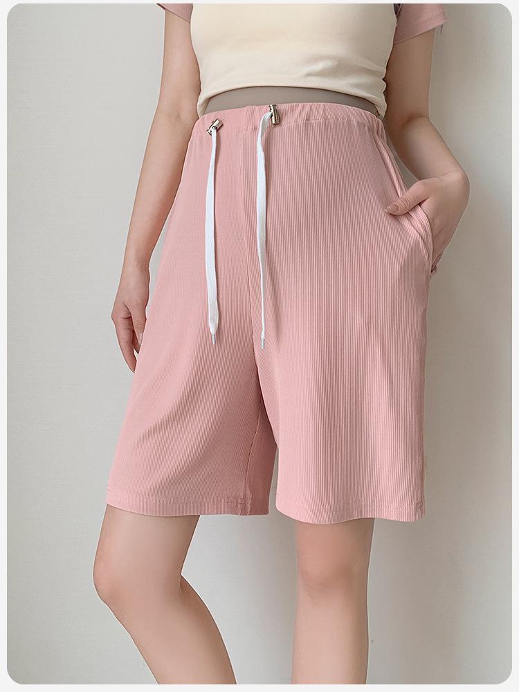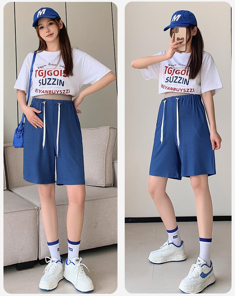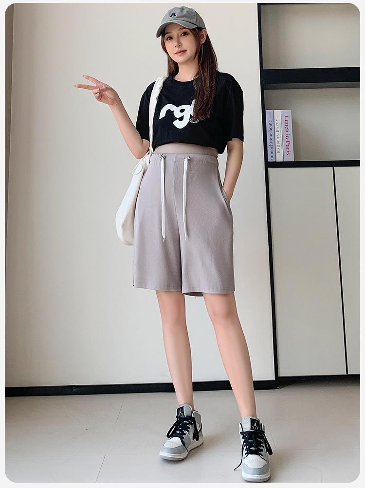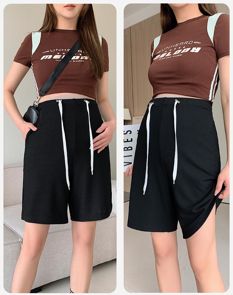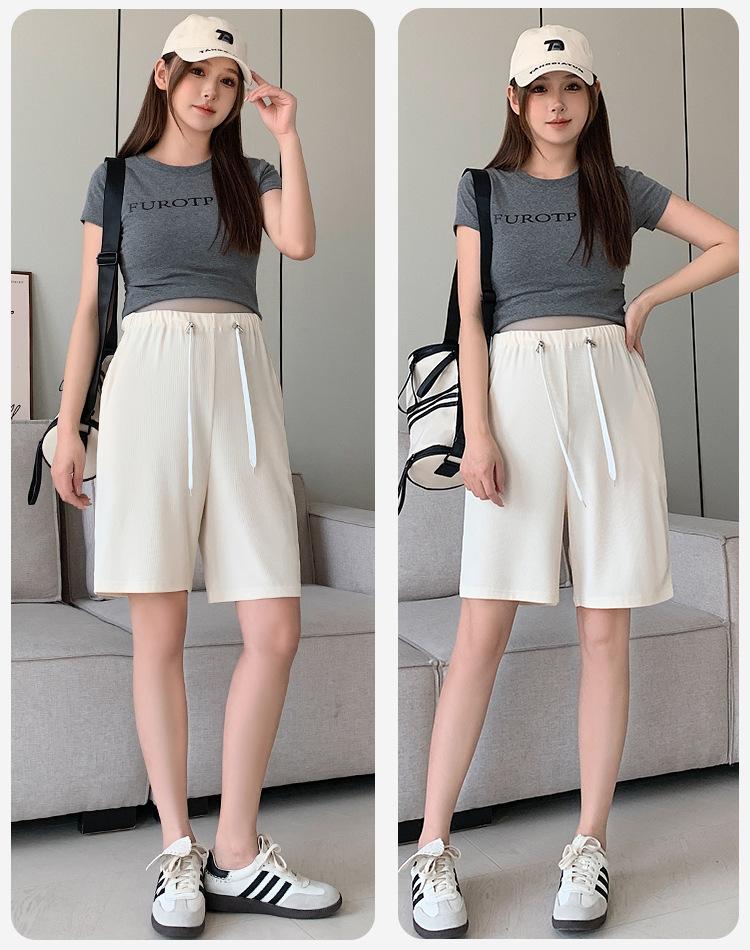 Después de dar a luz, también se pueden usar pantalones cortos de pierna ancha para mujeres embarazadas, pantalones casuales de seda helada para mujer 2024.