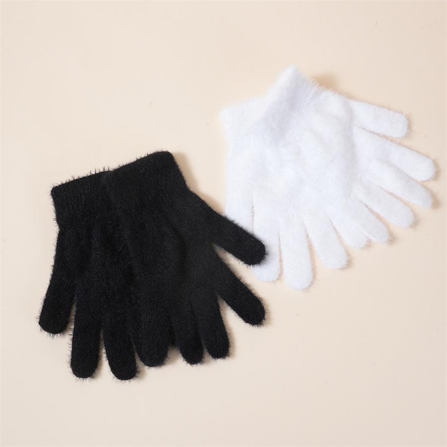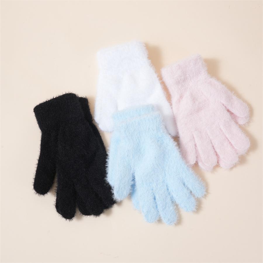 Guantes de otoño e invierno de estilo coreano para estudiantes femeninas, de color sólido, bonitos y dulces, con forro polar, cálidos y resistentes al frío, de cinco dedos.