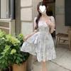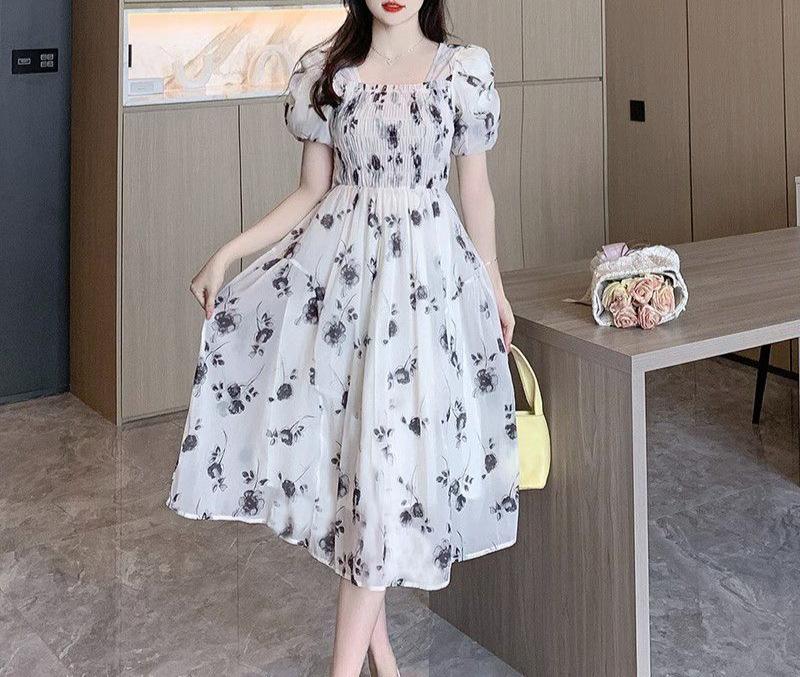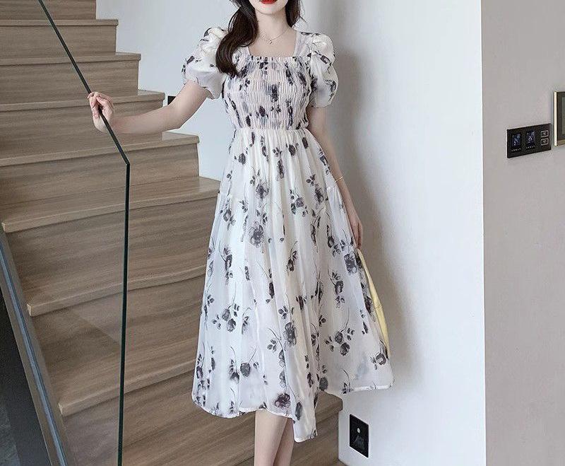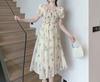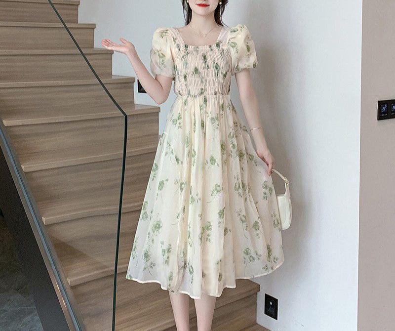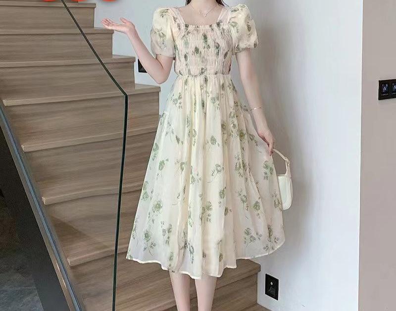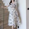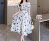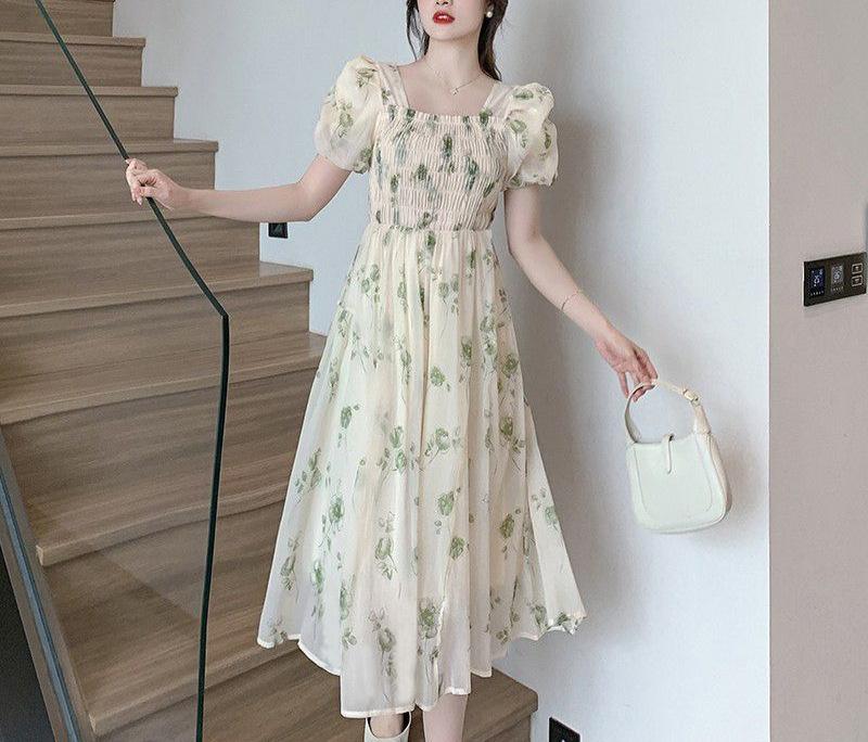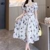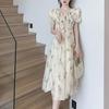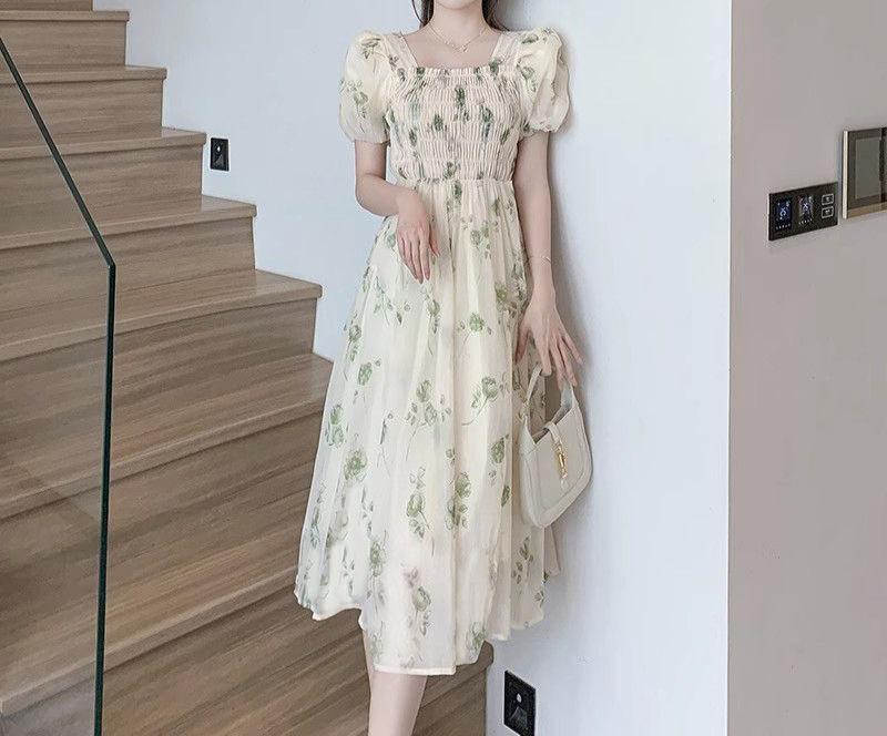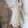 Vestido floral estilo francés para mujer, nuevo verano, fresco, suave, dulce, con mangas abullonadas, falda adelgazante