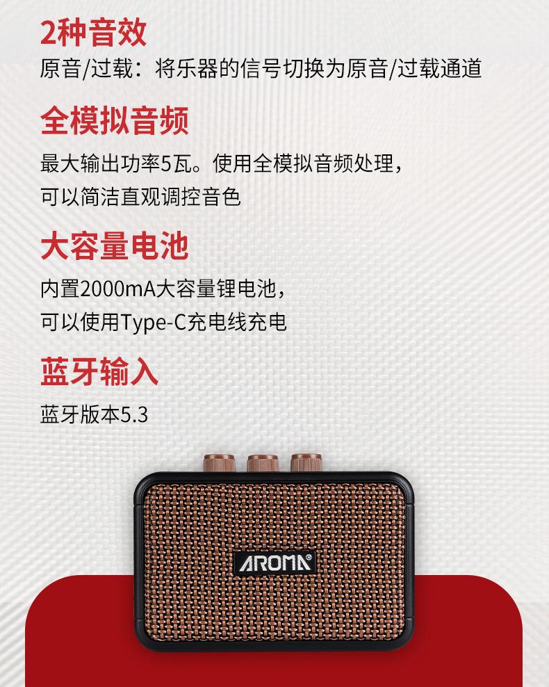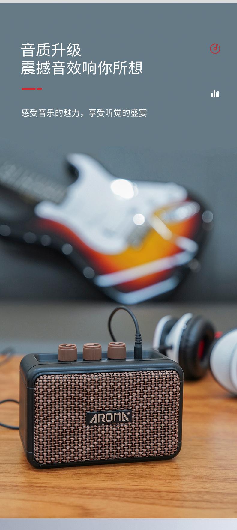 AROMA AG-04 - Altavoz pequeño para guitarra eléctrica con Bluetooth, potencia de salida de 5 vatios, procesamiento de audio analógico completo