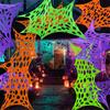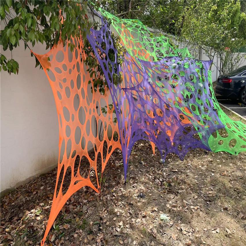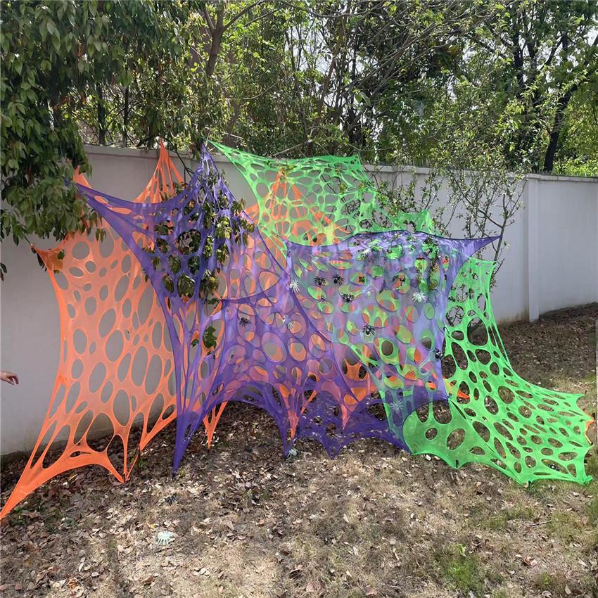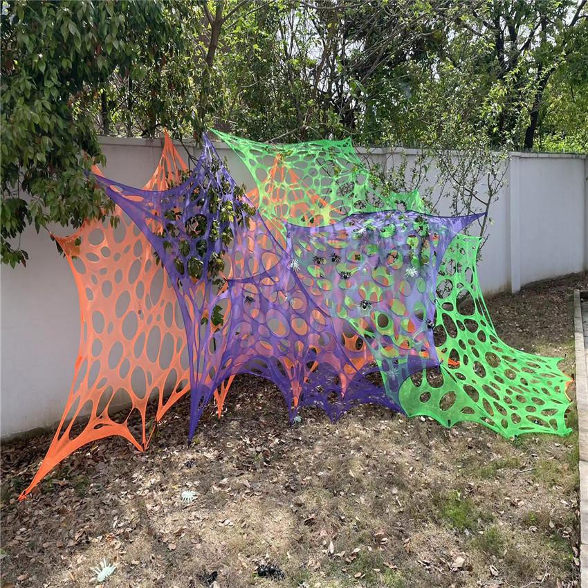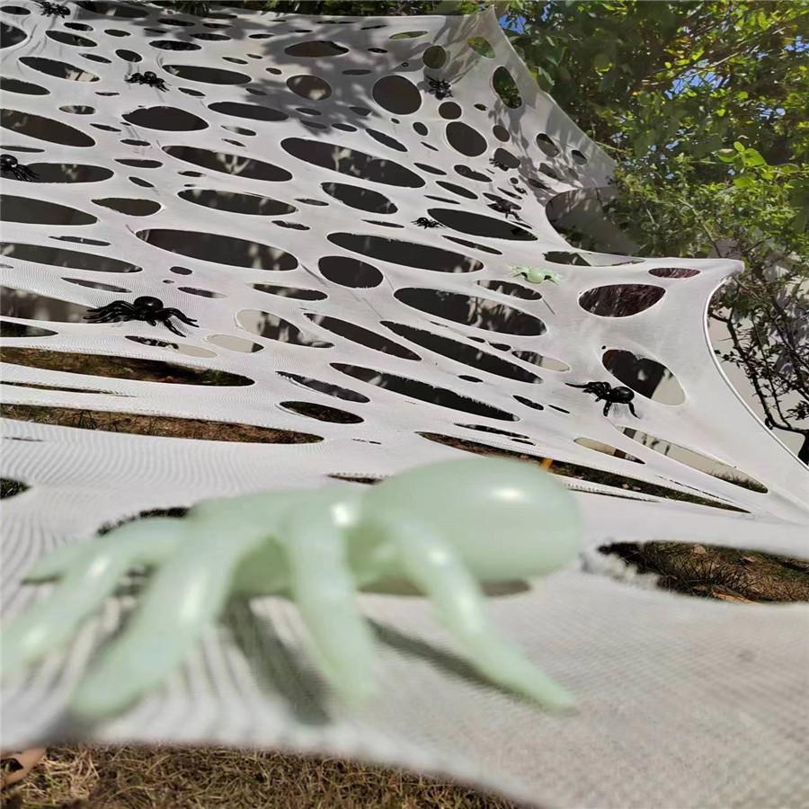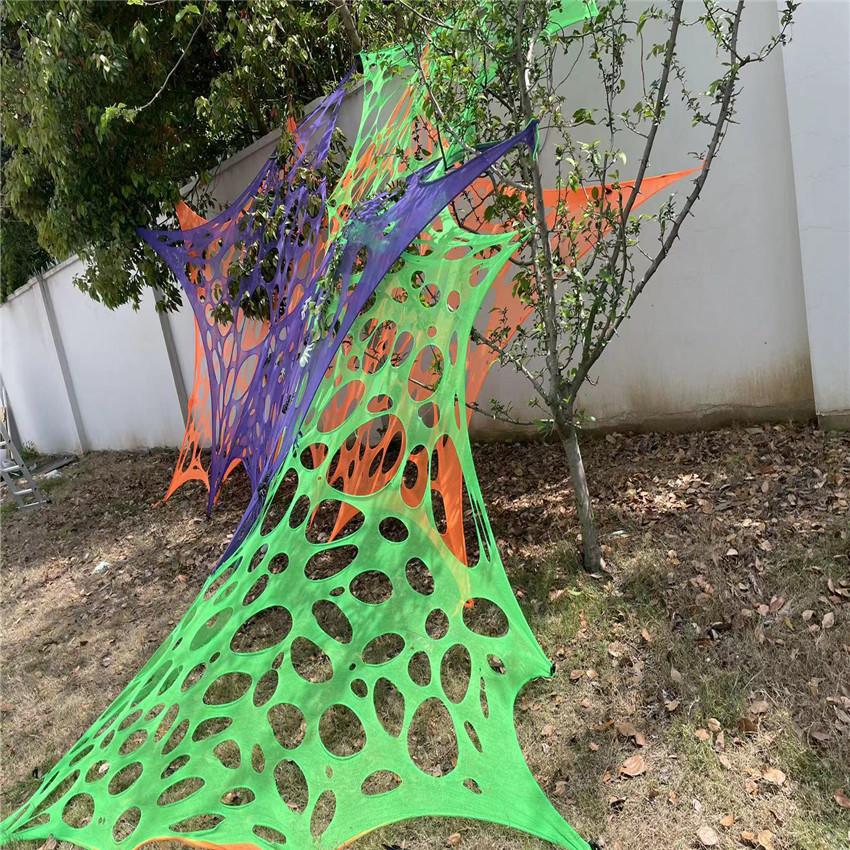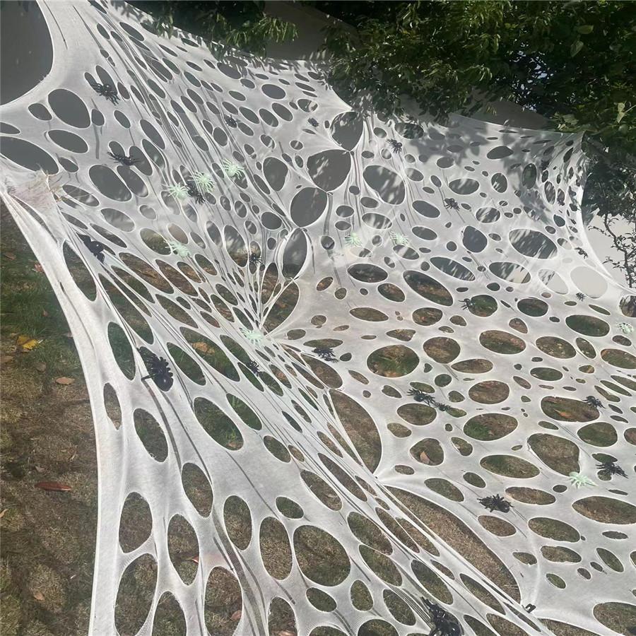 Telaraña de Halloween que brilla en la oscuridad, malla decorativa fluorescente, etc., el material es 100% poliéster.