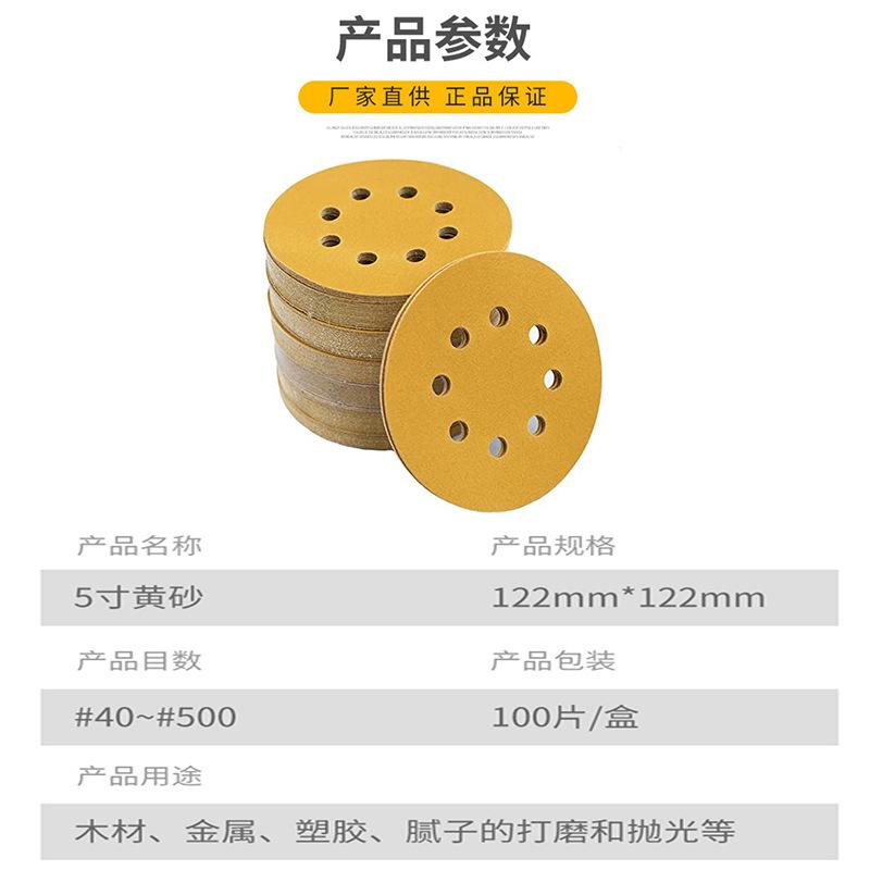 Disco de lija autoadhesivo de flocado amarillo de 5 pulgadas, masilla para pulido de automóviles, hoja de papel de lija de pulido en seco de terciopelo.