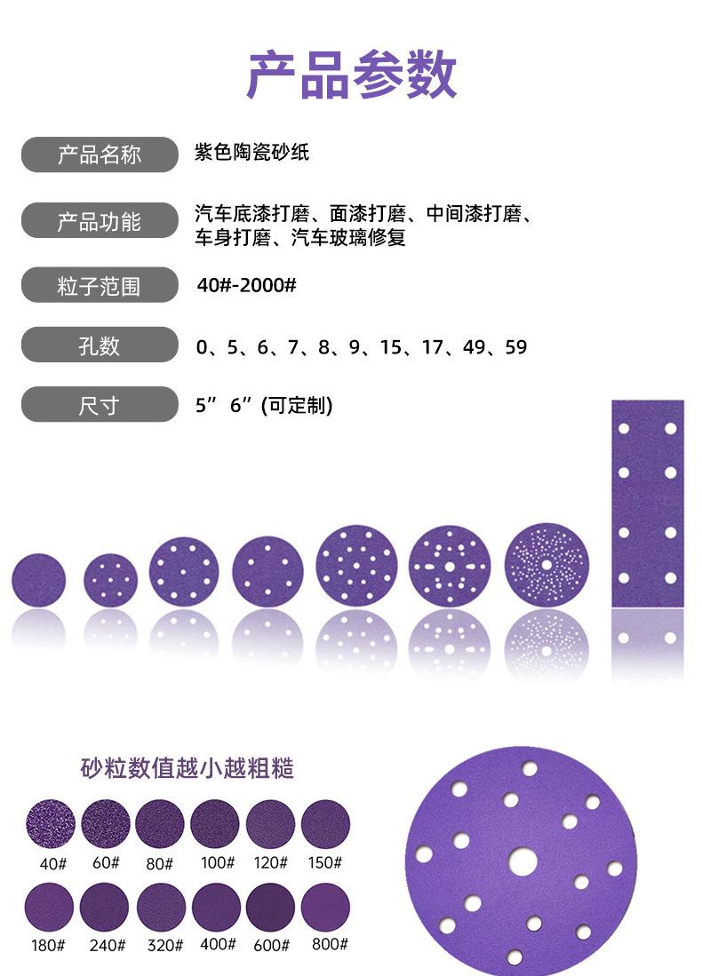 5 inch 6 hole purple sand 60-100#, 5 inch 6 hole purple sand 120-800#, 6 inch 17 hole purple sand 60-100#, 6 i...