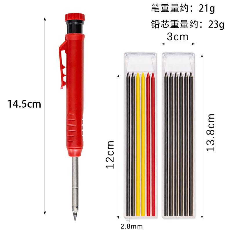 Lápiz de carpintería de metal de cabeza larga para agujeros profundos personalizado transfronterizo, lápiz de carpintería de ingeniería profesional, marcado de secado rápido, mina de 2,8 mm