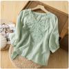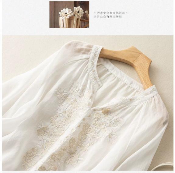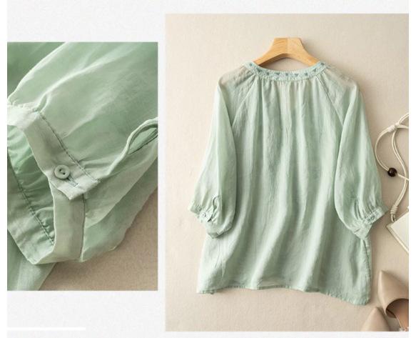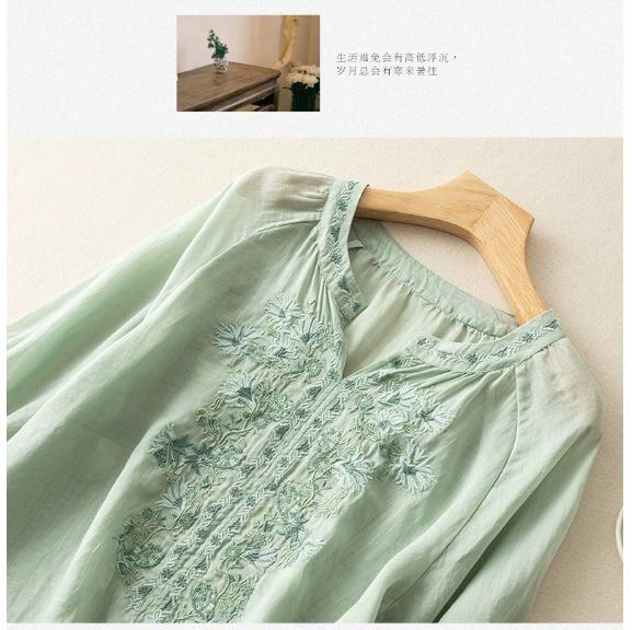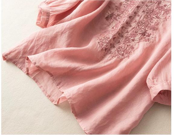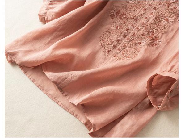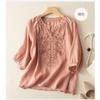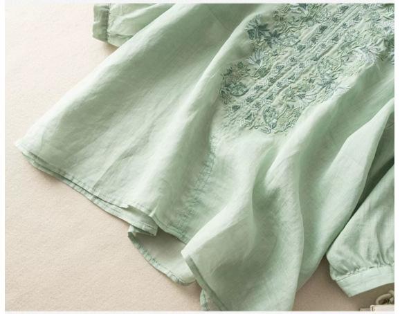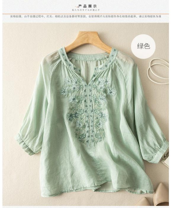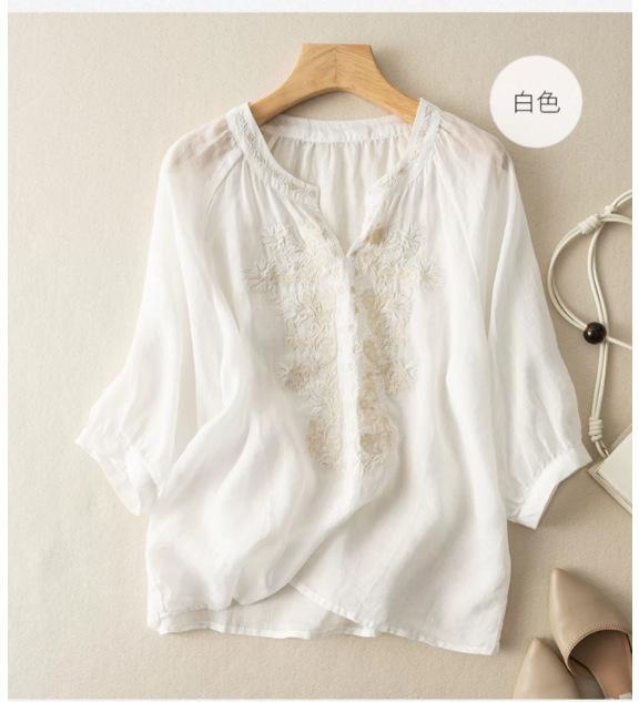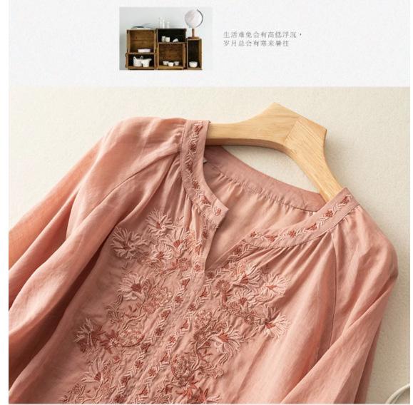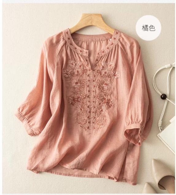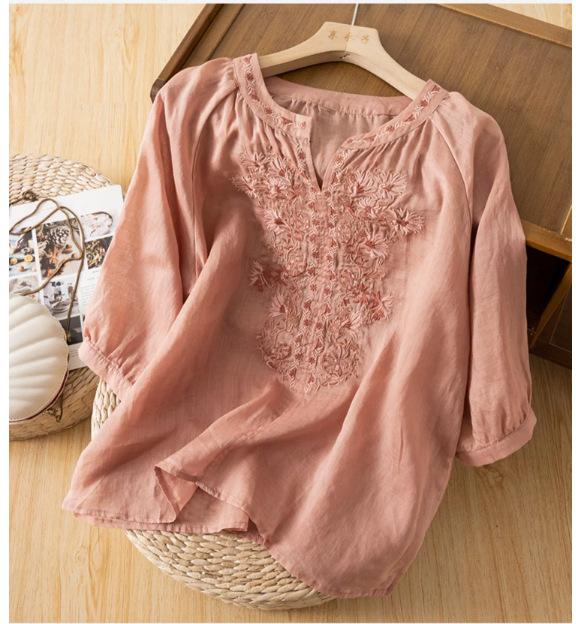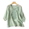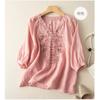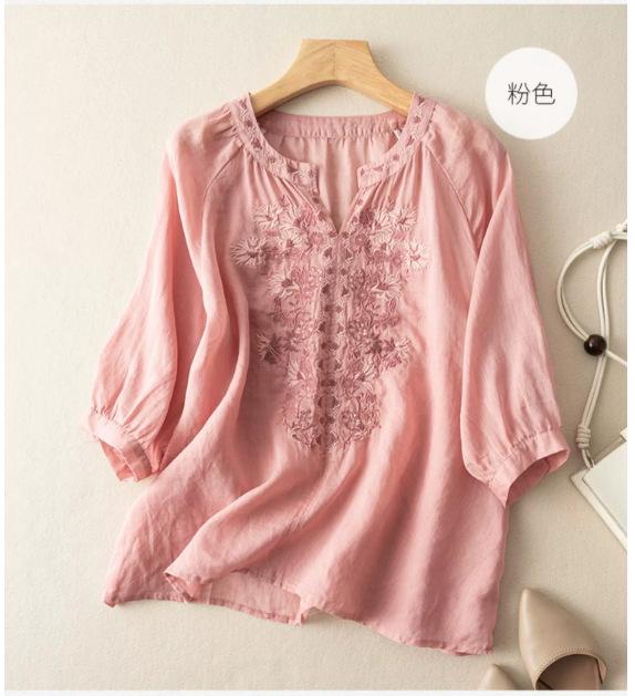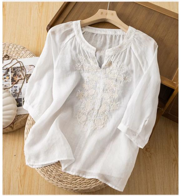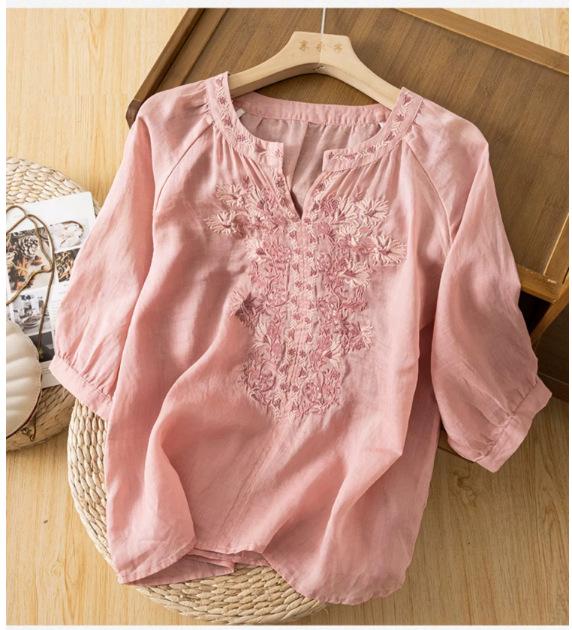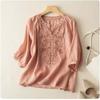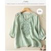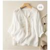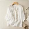 Camisa holgada retro artística de algodón y lino para mujer, verano 2024, n.° 9050