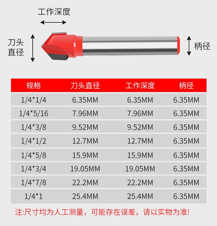 Diameter 6.35mm (v-knife)(1/4), Diameter 7.96mm (v-knife)(5/16), Diameter 9.52mm (v-knife)(3/8), Diameter 12.7...