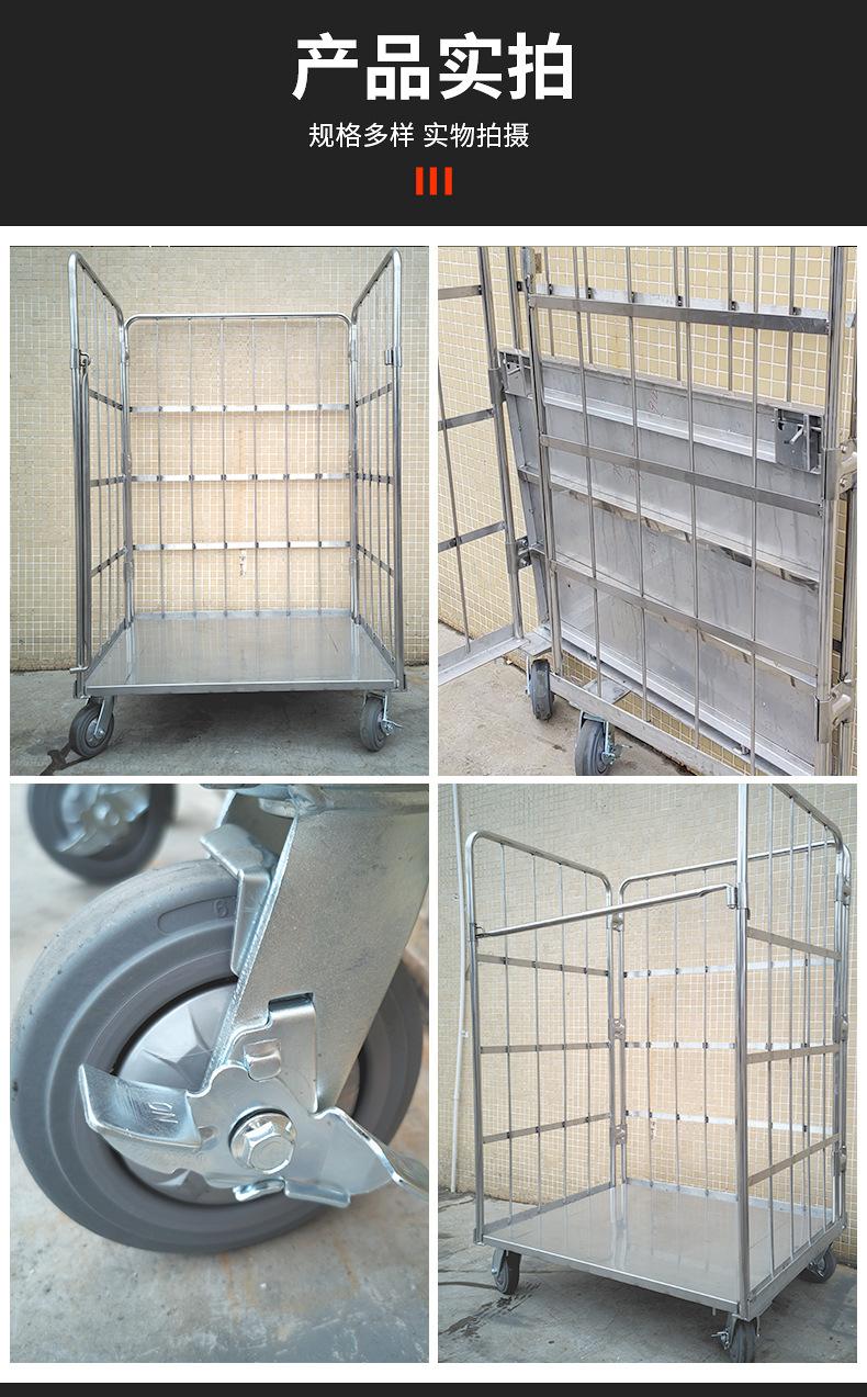 Carro Plegable Engrosado Carro Móvil para Productos Camión de Rotación Logística Sistema de Almacenamiento Carro Jaula de Acero Inoxidable