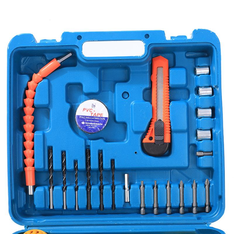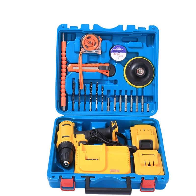 Taladro eléctrico de litio multifuncional recargable para el hogar de alta potencia taladro eléctrico de mano avance y retroceso destornillador eléctrico juego de taladro de impacto