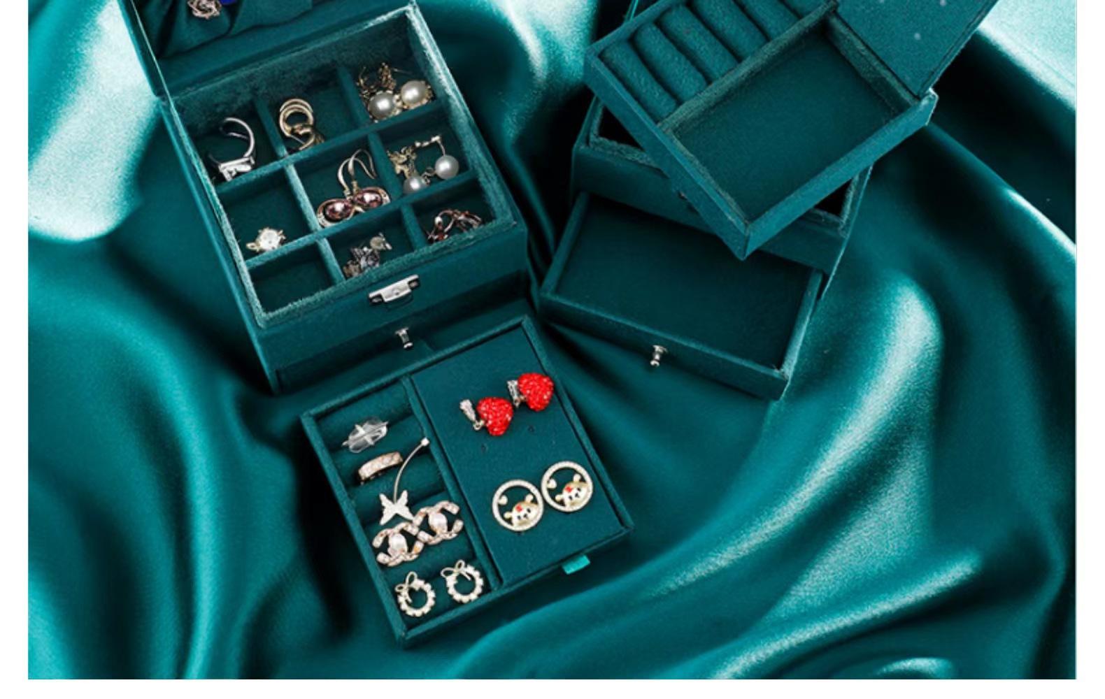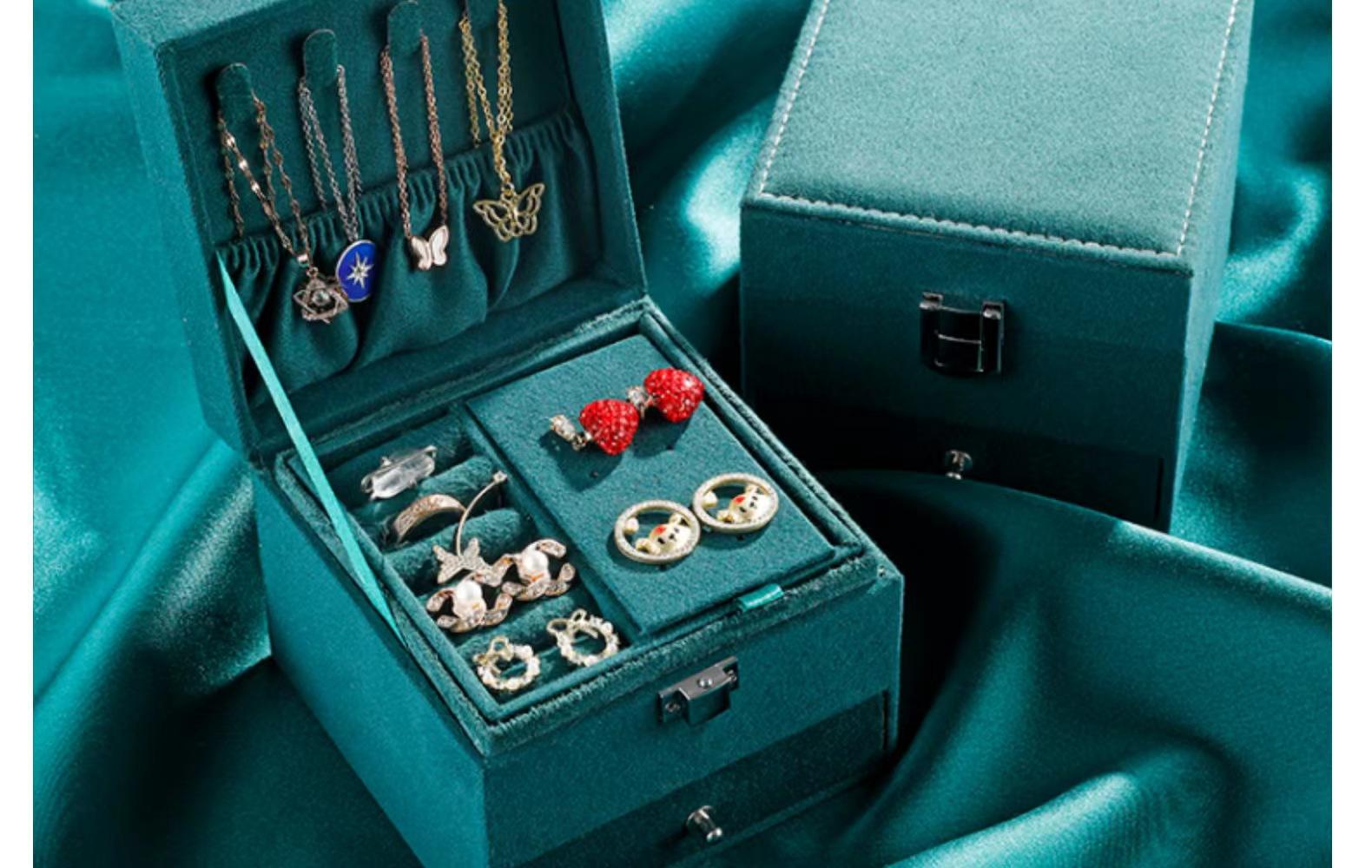 Joyero de terciopelo multicapa con cajón para guardar anillos, pendientes y joyas con cerradura, organizador de joyas 2022