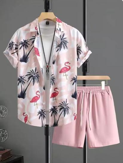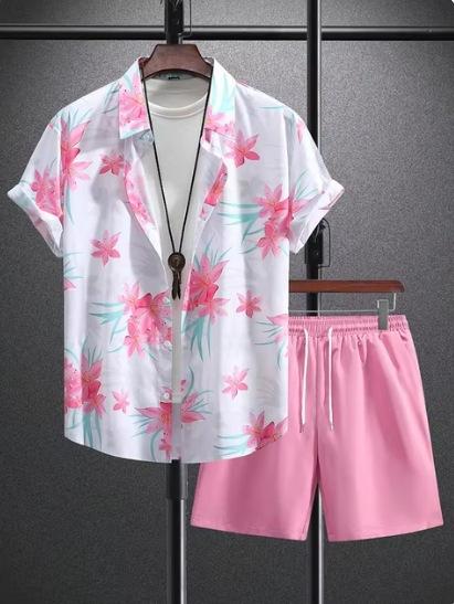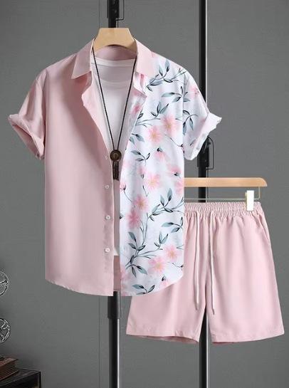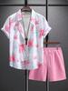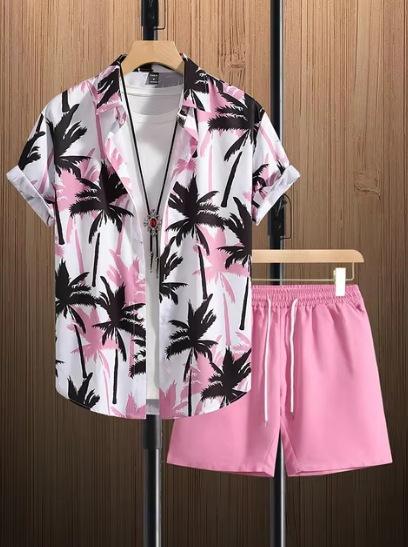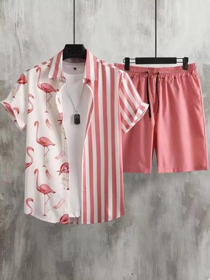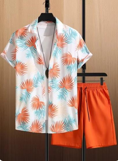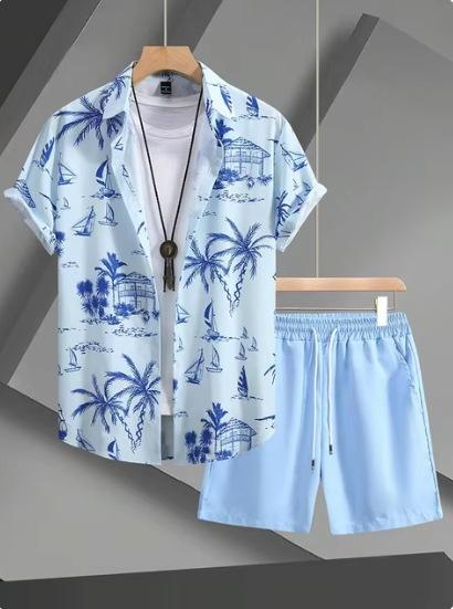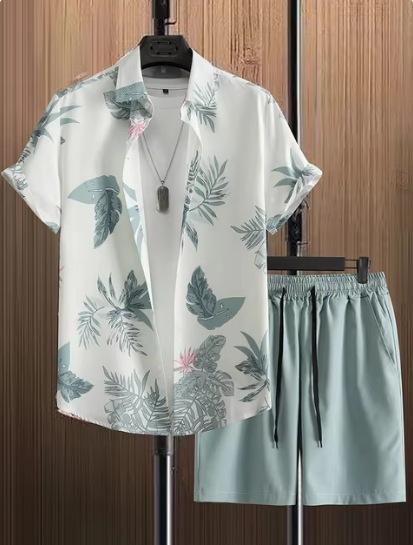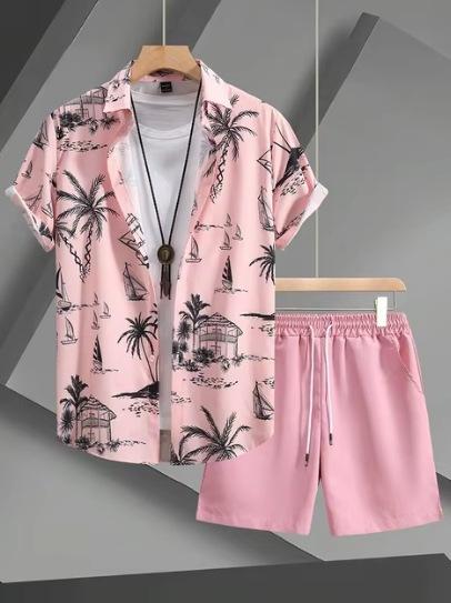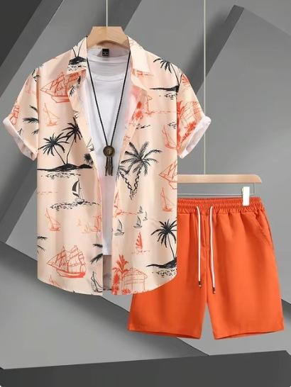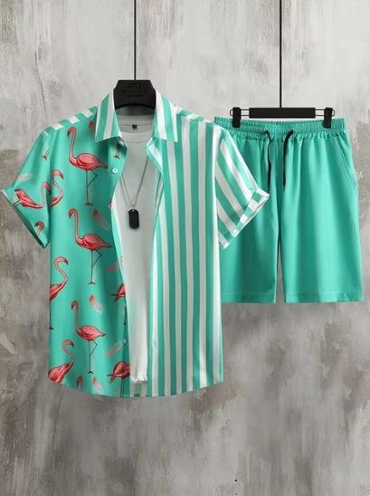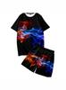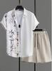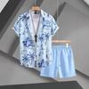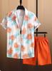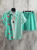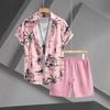 Conjunto de dos piezas de cárdigan con estampado 3D para hombre, camisa y pantalones cortos, verano 2024, transfronterizo entre Europa y Estados Unidos