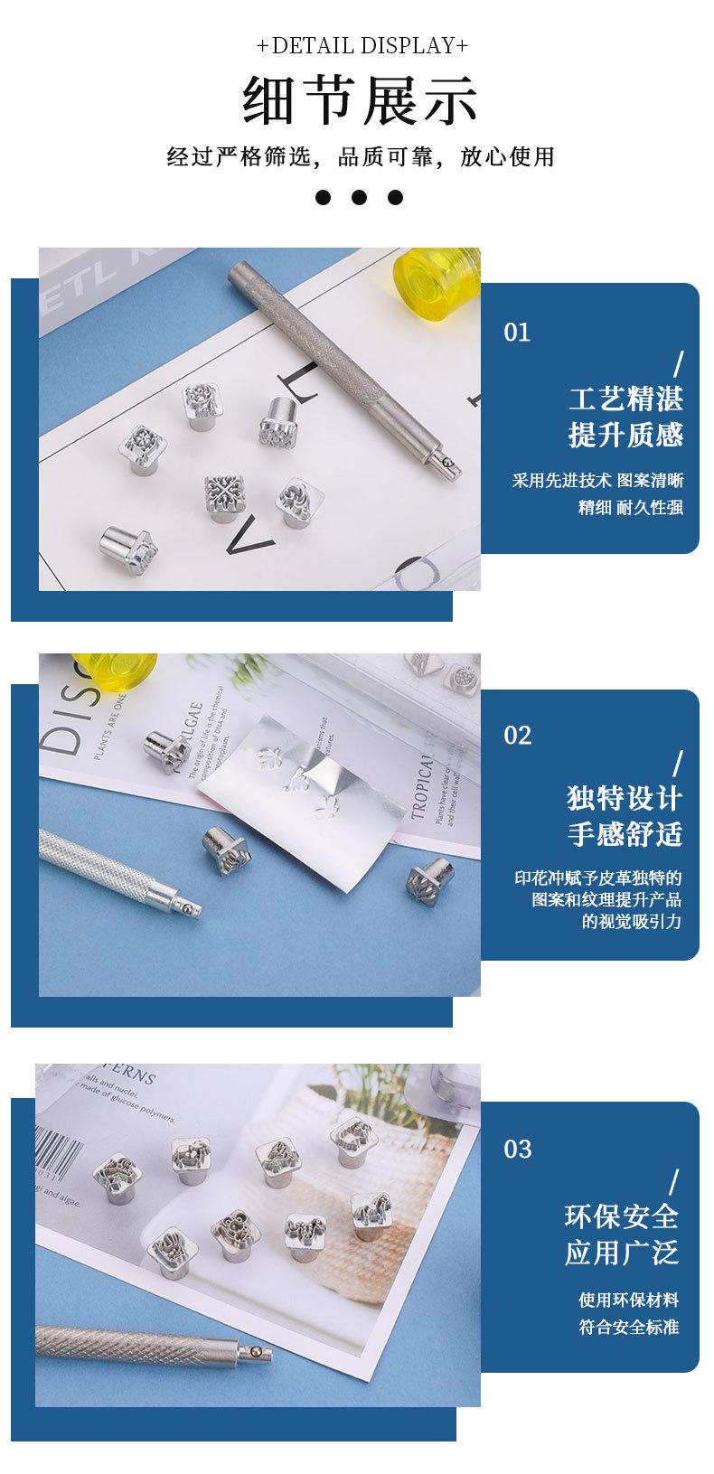 Herramientas de impresión de cuero, ideales para tallado artístico de cuero, impresión profesional de cuero, artículos de cuero, bricolaje.