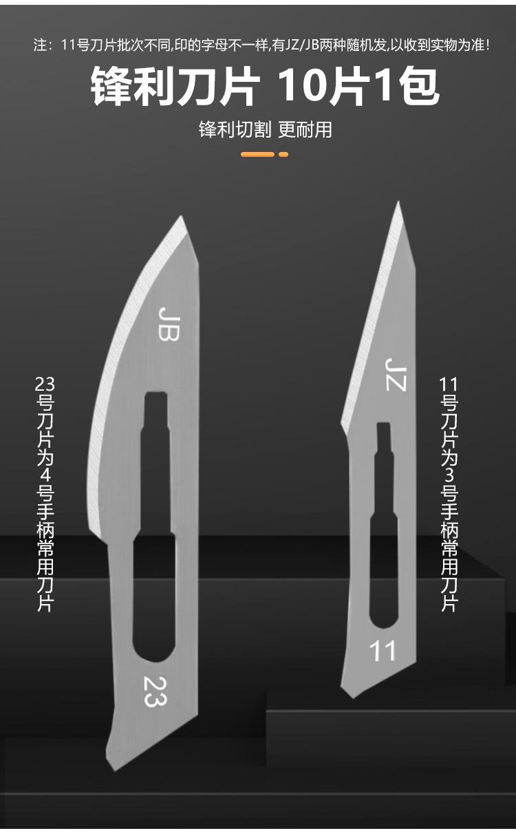 Nota: No. 11Diferentes lotes de cuchillas tienen letras impresas diferentes. Hay dos tipos, JZ/JB. Se envían aleatoriamente y prevalecerá el producto real recibido.