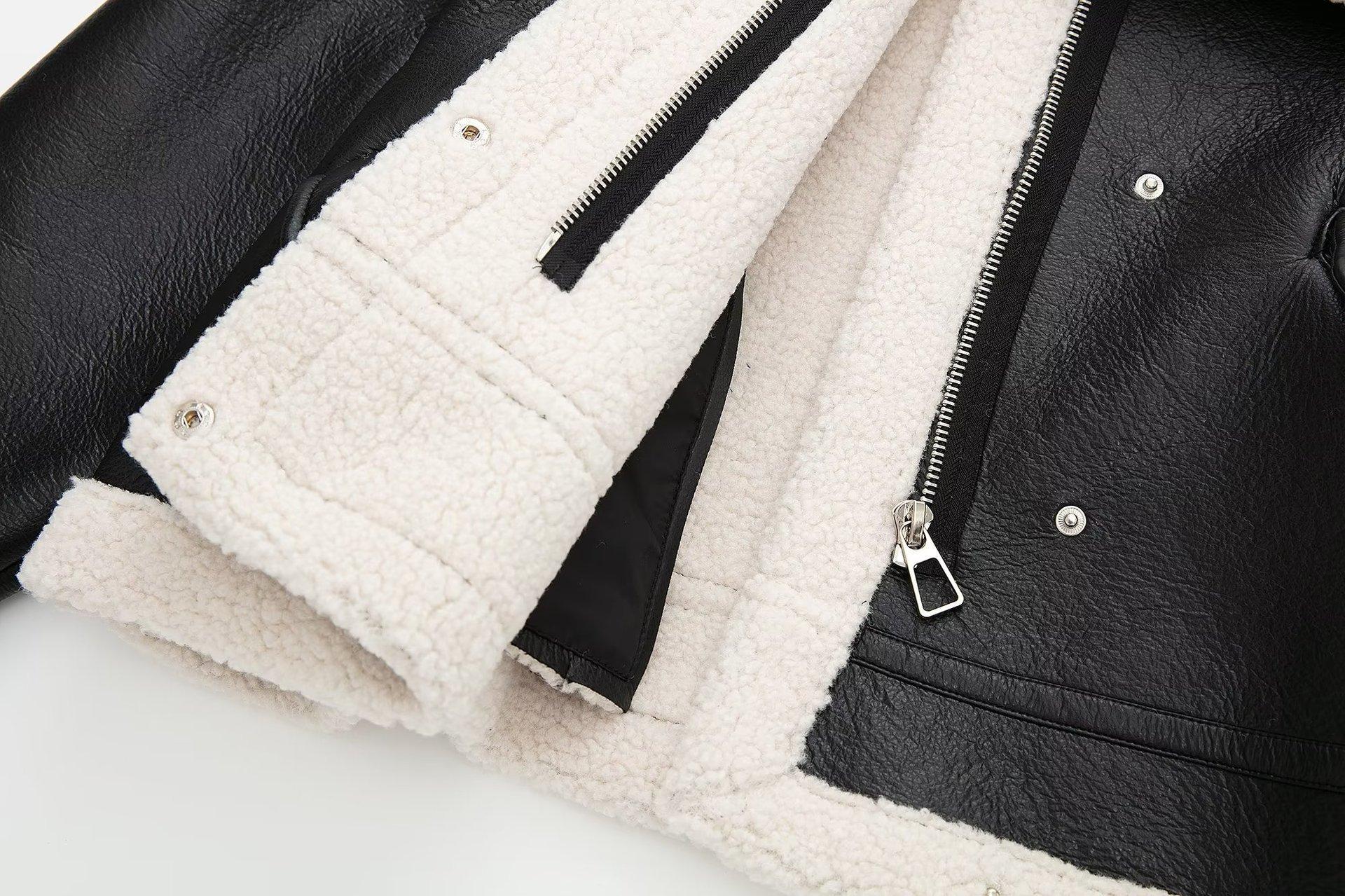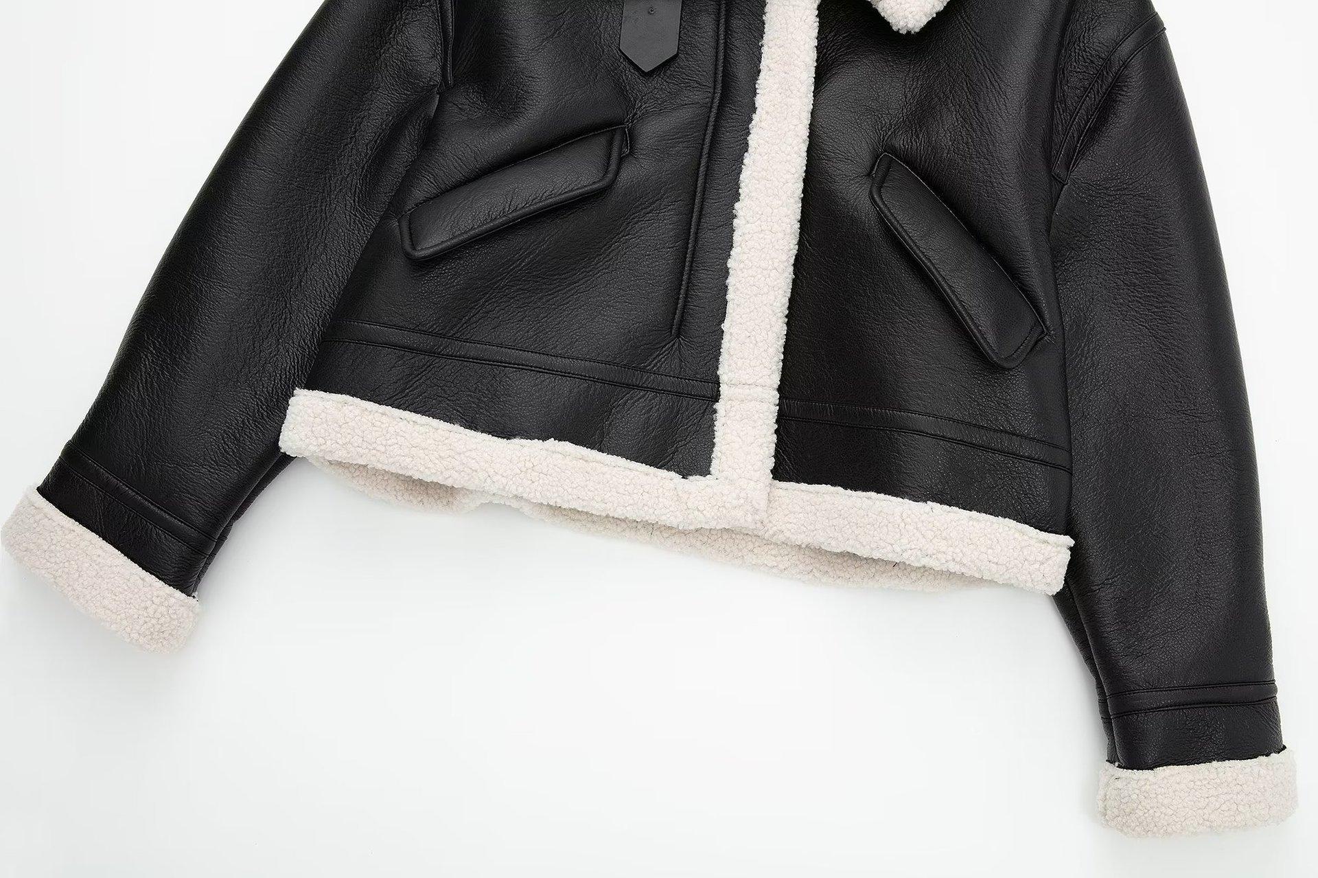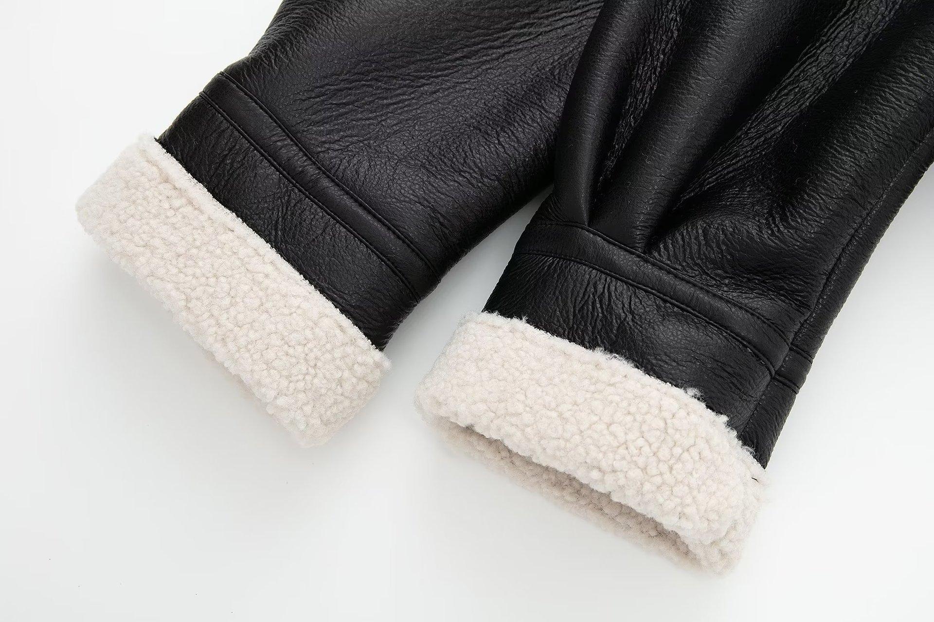 6001 black lambswool leather coat
